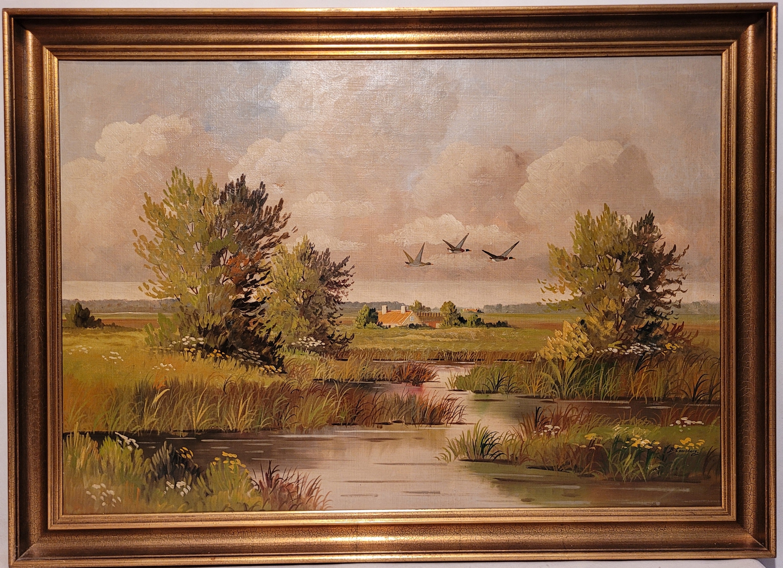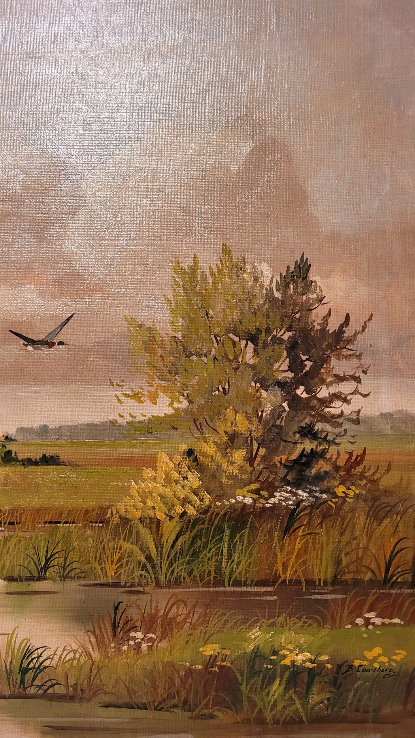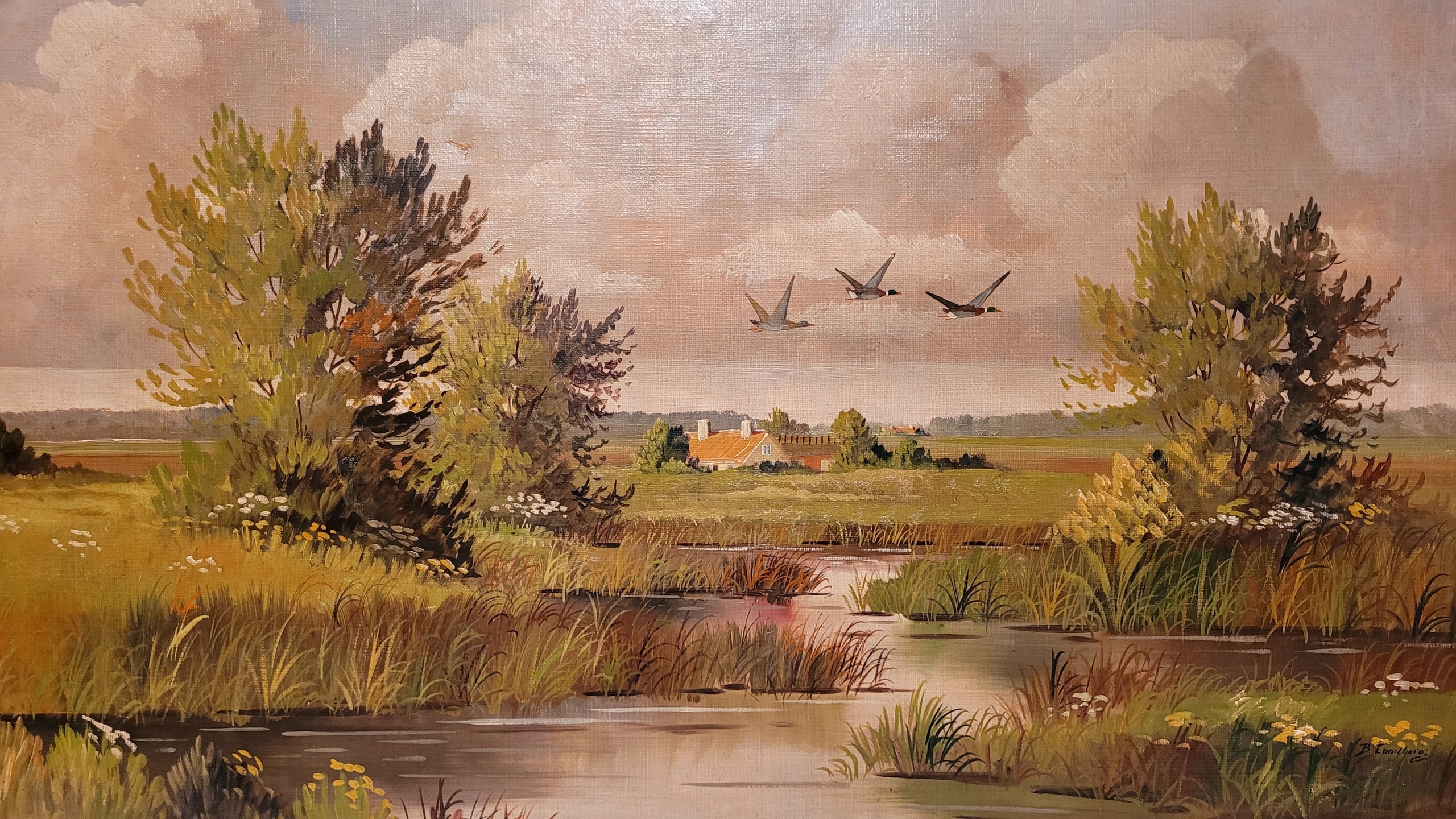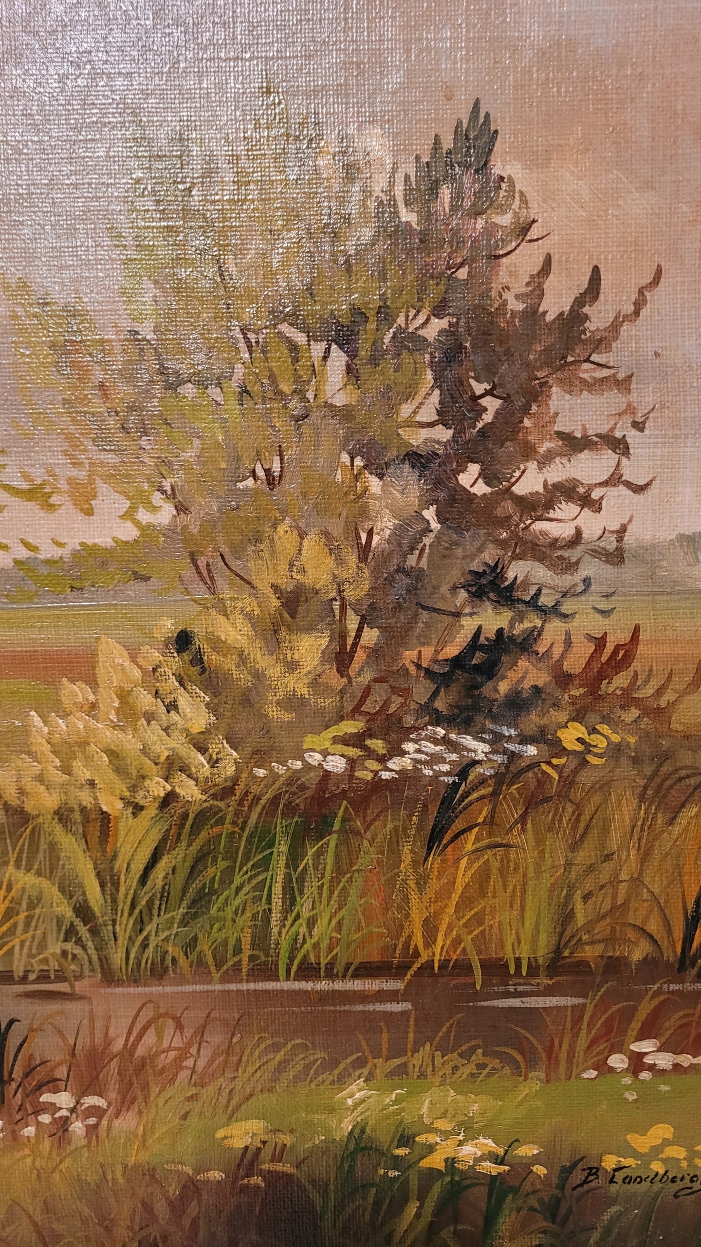 БЬЯРНЕ ЛАНДБЕРГ (1900 - ?) - «СЕЛЬСКИЙ ПЕЙЗАЖ С ЗАБОЛОТНЫМИ УЧАСТЯМИ», картина маслом.