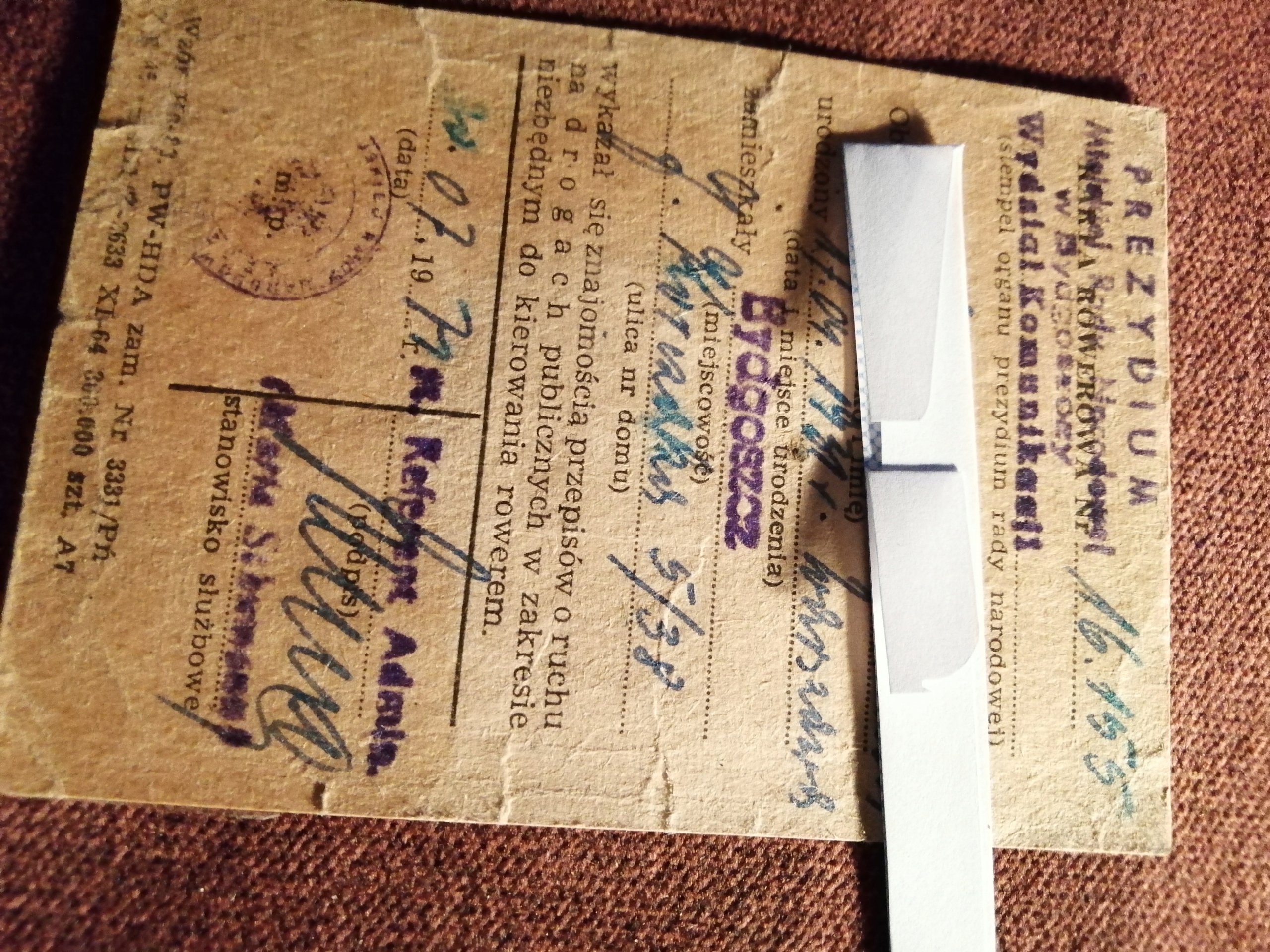 BYDGOSZCZ 1971- KARTA ROWEROWA