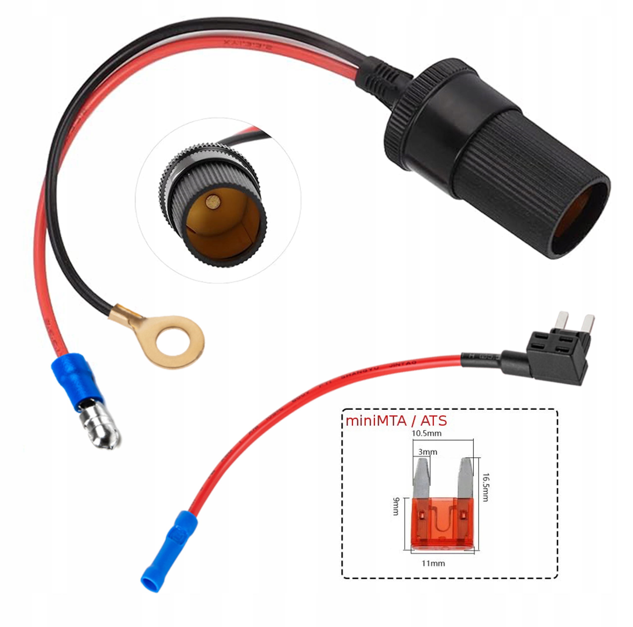 - Гнездо прикуривателя с проводами, заканчивающимися разъемами