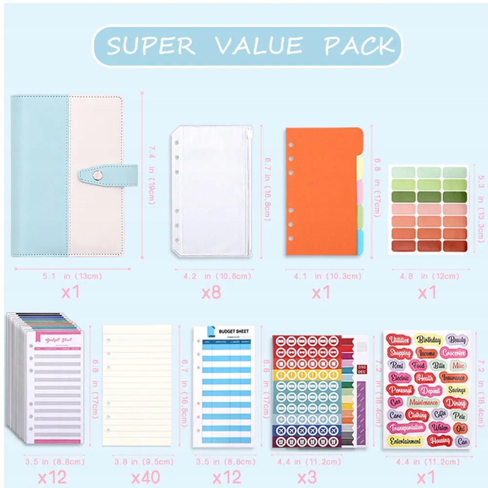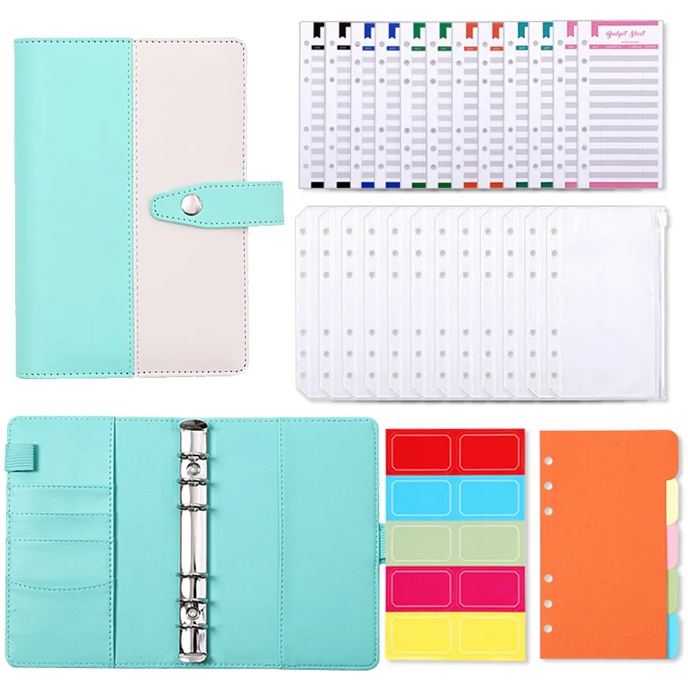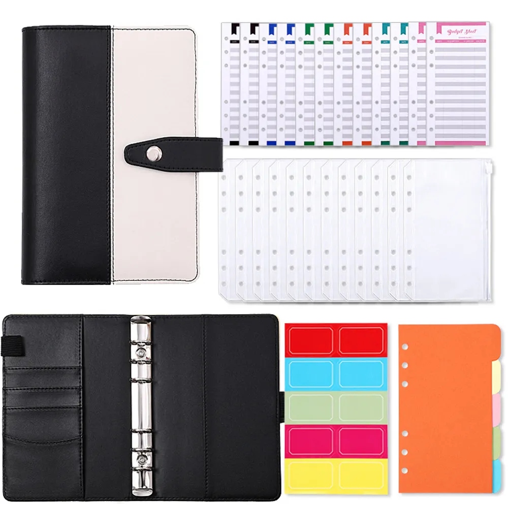 2023 Система бюджетных конвертов для ноутбука с переплетом из искусственной кожи формата A6, с карманами для переплетов для органайзера для экономии денег