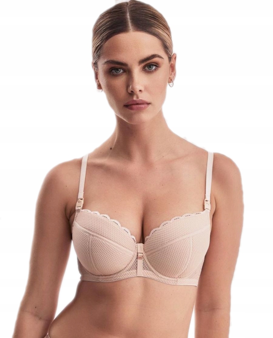 Mama Chita U/ в бежевом бюстгальтере с уплотнителями от Alles, посвященный молодым мамам. Модель обеспечивает поддержку груди и позволяет кормить, не снимая бюстгальтер. Застежка Quick-Click позволяет расстегивать и застегивать каждую чашку одной рукой. Коллекция для мам Alles напоминает и вам, что нужно помнить... о себе в это необычное время!