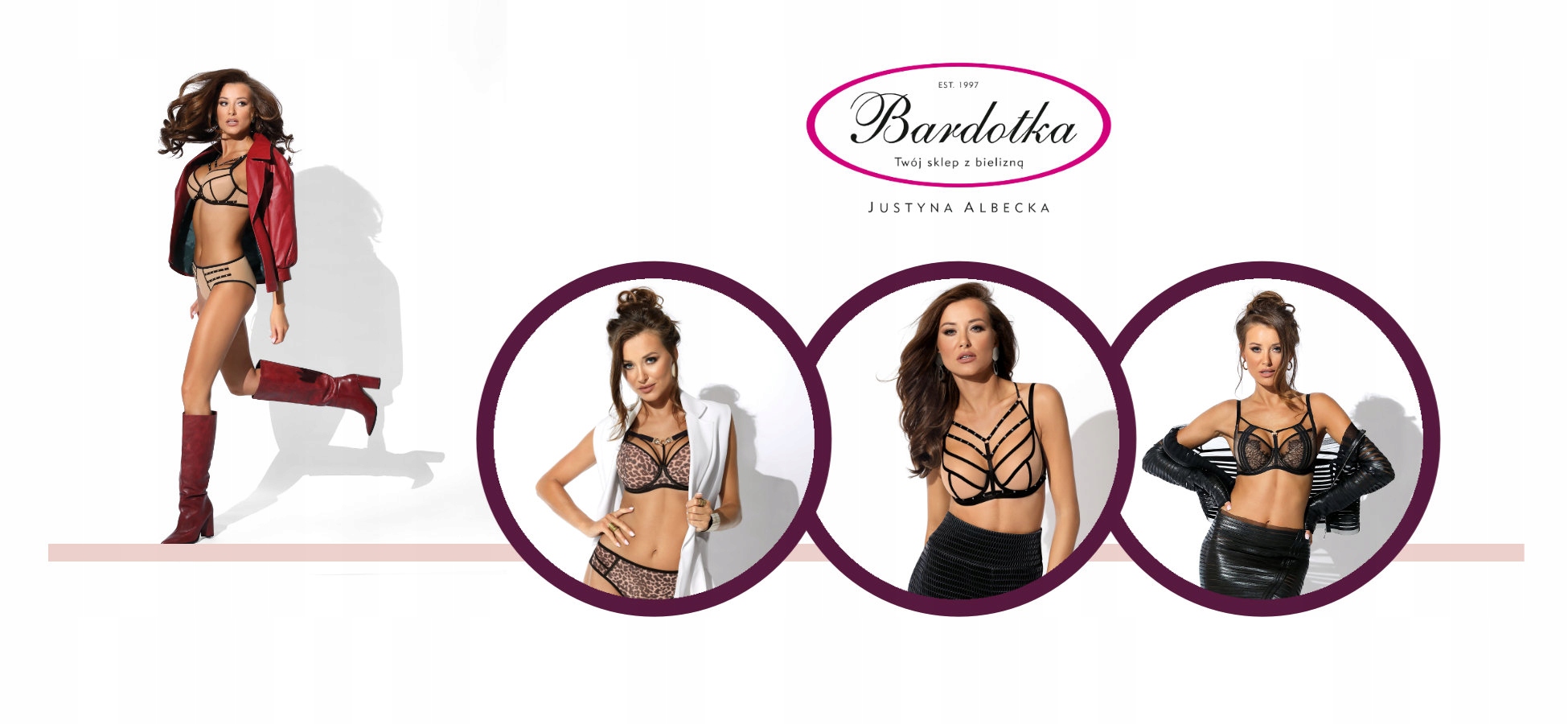 Магазины Bardotka имеют более чем 25-летний опыт работы в индустрии нижнего белья. Наши салоны нижнего белья отличаются профессиональным подбором нижнего белья для женщин любой фигуры и размера. В нашем предложении представлены бюстгальтеры польских, британских, голландских, испанских и французских брендов. Нижнее белье для амазонок и кормящих мам. Бюстгальтеры размером от 60 до 120 сантиметров под грудь и чашками от А до S – также по специальному заказу. Разнообразие узоров, фасонов и цветов. Мы прилагаем все усилия, чтобы предлагаемая нами продукция была наилучшего качества, гарантируя при этом полный комфорт использования и подчеркивая женственность.
