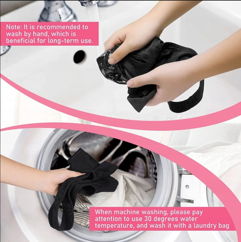 Примечание по очистке. При длительном использовании рекомендуется ручная стирка. При стирке в стиральной машине застегните молнию и постирайте бюстгальтер в стиральном мешке при температуре 30°C.