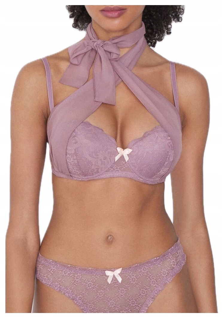 - Бюстгальтер Madrid с плотными подкладками, выполненный из кружева с шифоновыми лентами, перекрещенными на вырезе.