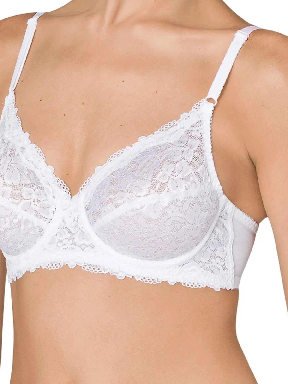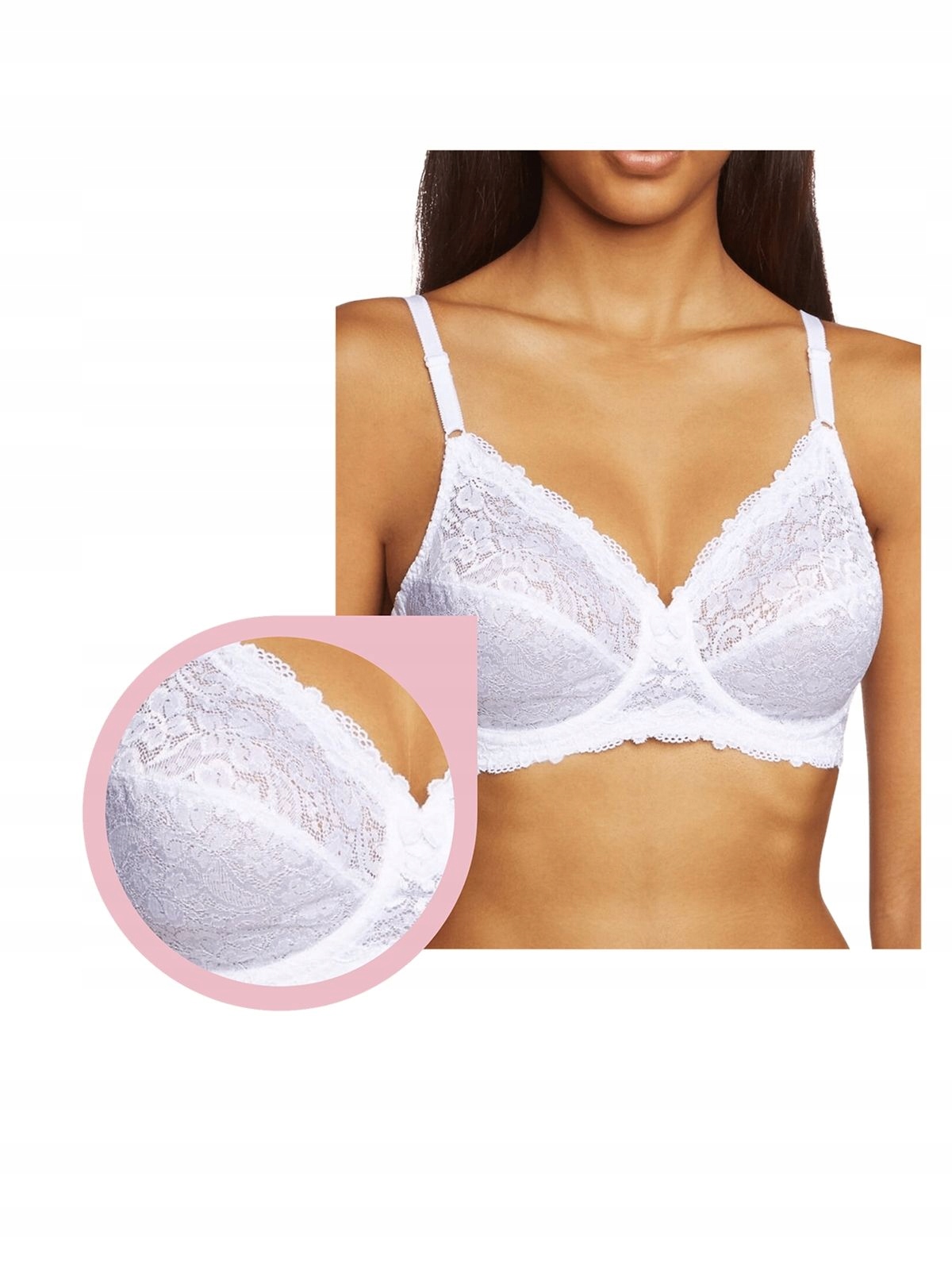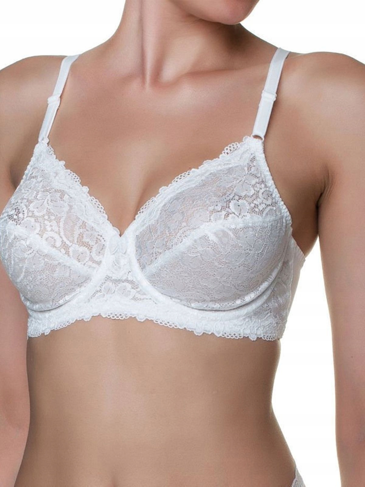 Эффективный кружевной бюстгальтер. Он идеально подходит для любого типа бюста. Мягкая чашка внутри дополнительно усилена материалом. Красивая вышивка с растительным мотивом, добавляющая шарма и привлекательности. Это уникальная модель, которую должна иметь в своем гардеробе каждая женщина. Бока гладкие, застегиваются на крючки, бретели несъемные, регулируются спереди.
