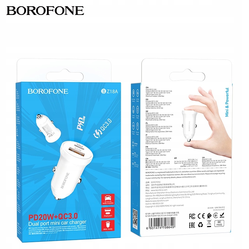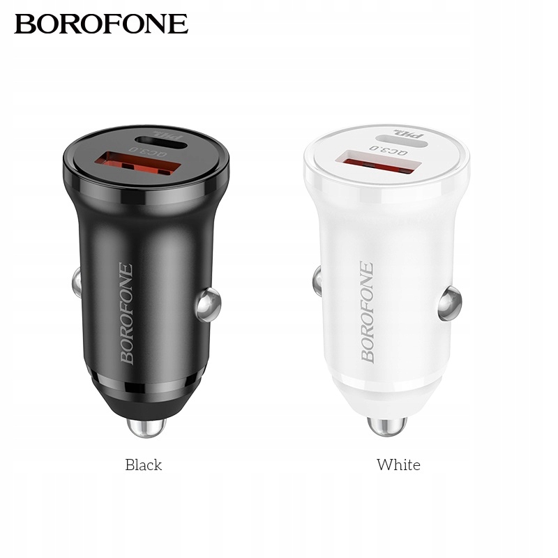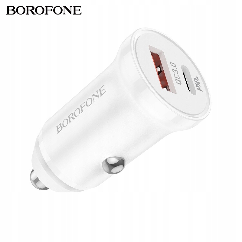 BOROFONE BZ18A — быстрое автомобильное зарядное устройство с одним портом USB Type-C/Type C, выходной мощностью 20 Вт, в стандарте Power Delivery/PD и вторым портом в стандарте USB-A с выходной мощностью 18 Вт в стандарте Quick Charge 3.0/. КК3.0. Минималистичный дизайн, широкий диапазон напряжений и большие возможности зарядки различных мобильных устройств – его главные и неоспоримые преимущества. Зарядное устройство совместимо с устройствами Apple и Samsung, а также с другими устройствами с разъемом USB Type-C/Type C.