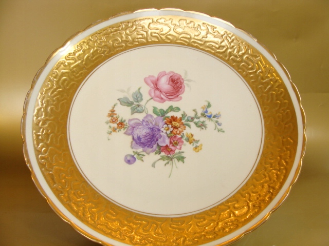 Красиво выполненная, в светло-кремовом и золотом цвете, в центре тарелки