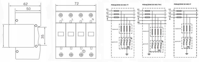 C 4P 3ФАЗНЫЕ ОГРАНИЧИТЕЛИ ЗАЩИТА ПЕРЕНАПРЯЖЕНИЯ T2 КЛАСС II