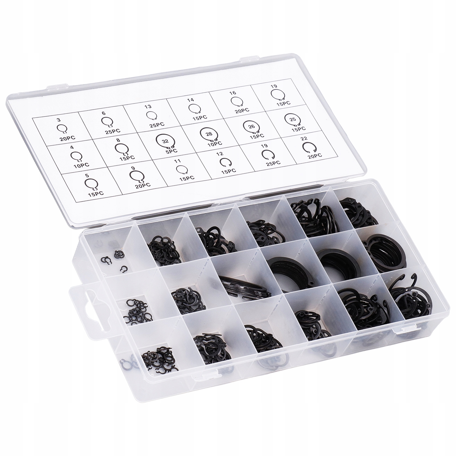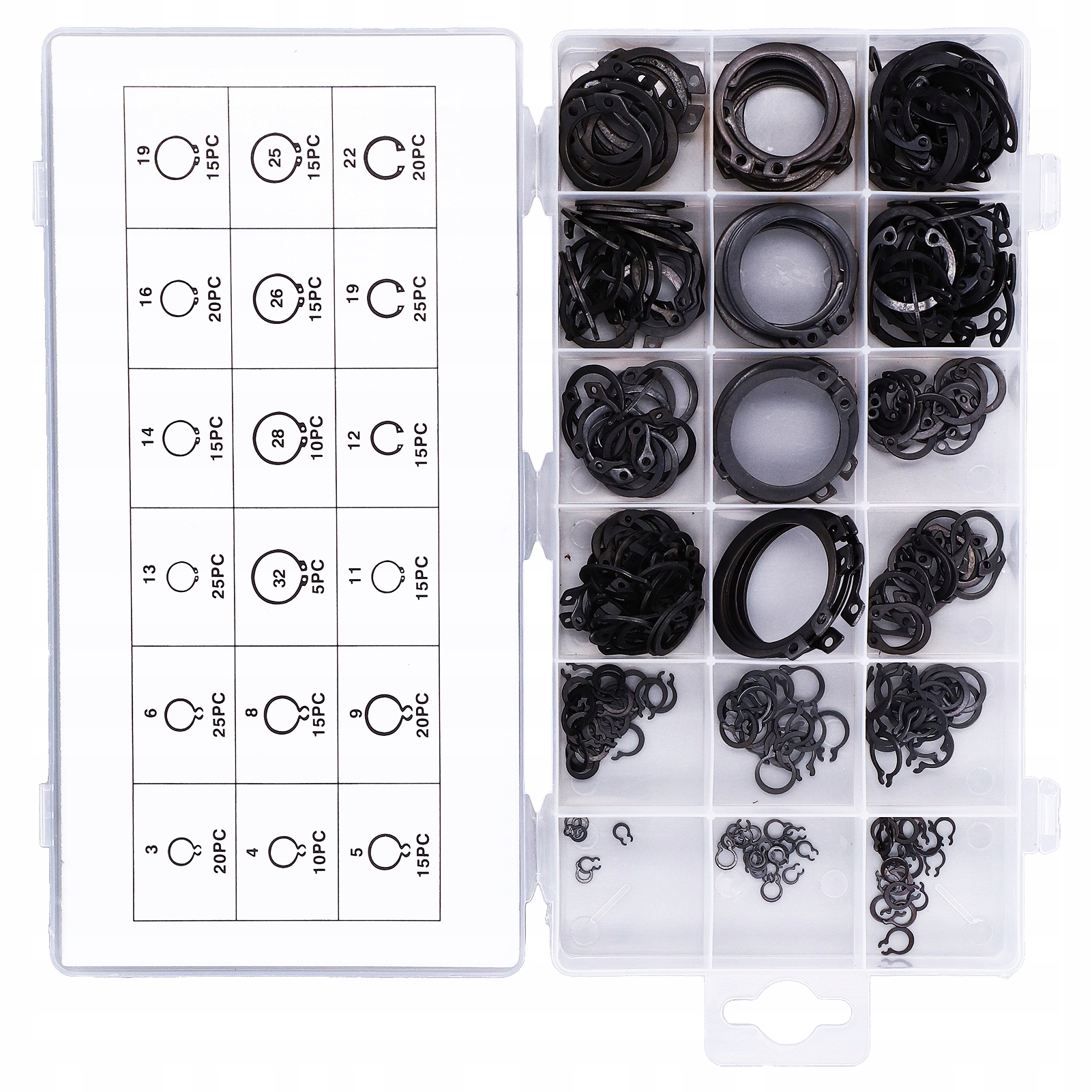 2: 300 шт. в упаковке: имеется 300 штук стопорного кольца разных размеров, которые удовлетворят все ваши рабочие потребности в разных местах.