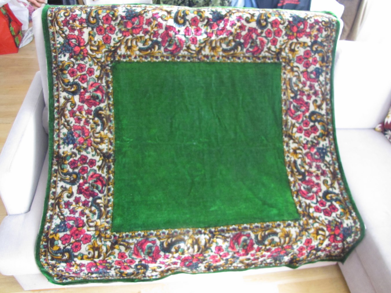 Скатерть внешними размерами 140 х 140 см. , изготовленная на рубеже XIX/XX веков в одной из лодзинских мастерских - подпись не сохранилась. Состояние очень хорошее, на скатерти в нескольких местах есть незначительные следы использования в виде выпадения волос - изменений цвета, посторонних запахов, потертостей, потертостей и т.п. нет.
