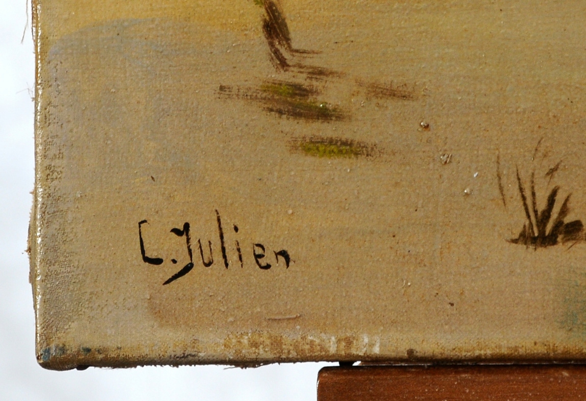 C. Жюльен "Сельский пейзаж на реке" Красивая старая масляная живопись!