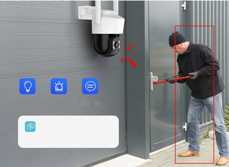 - Думает как мужчина: Интеллектуальное отслеживание движений распознает, человек это или просто движущаяся ветка. Камера повернется и будет следовать за злоумышленником, обеспечивая идеальный кадр и ноль ложных срабатываний.