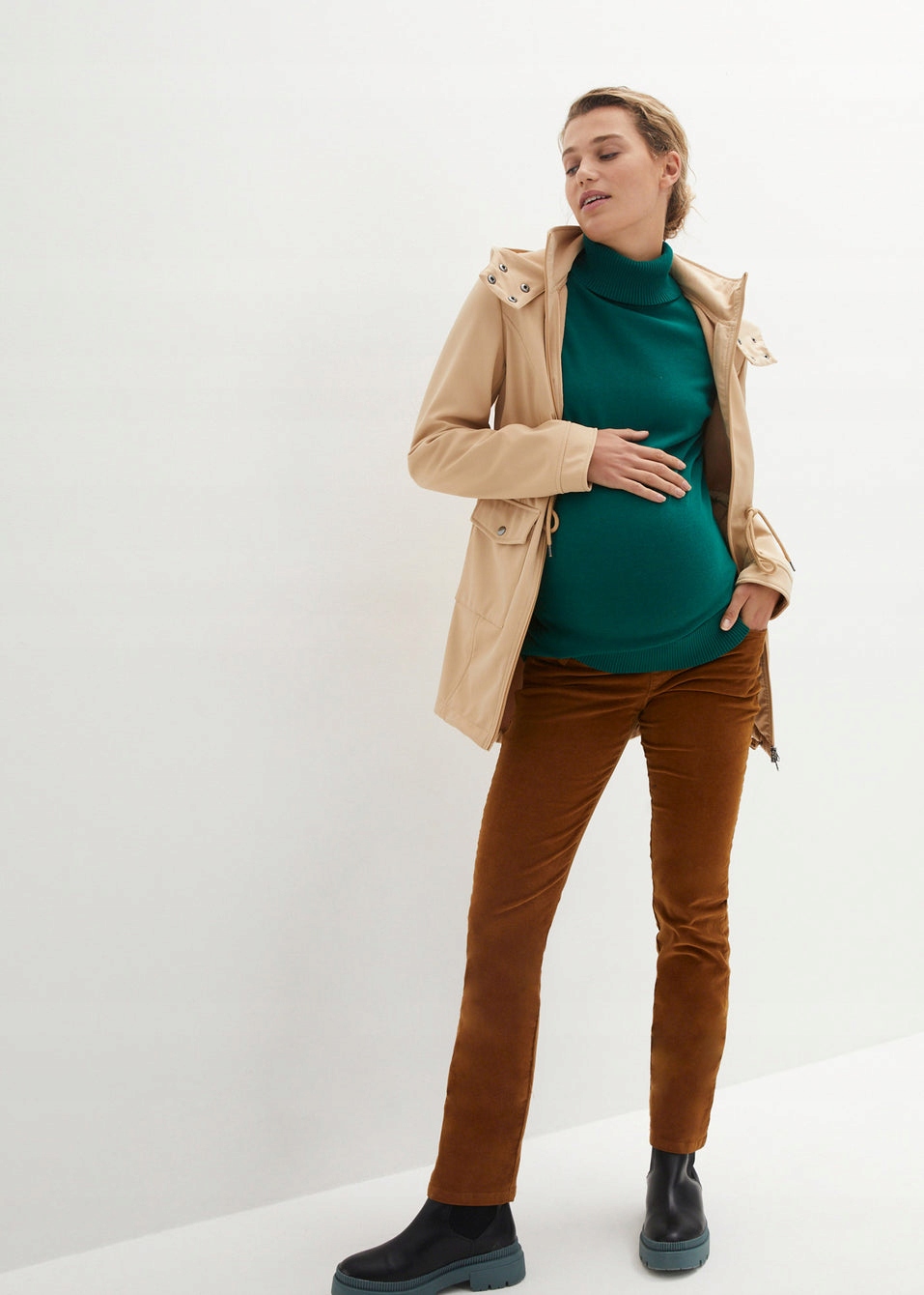 - Свитер в рубчик, который идеально подходит к вашему меняющемуся силуэту.