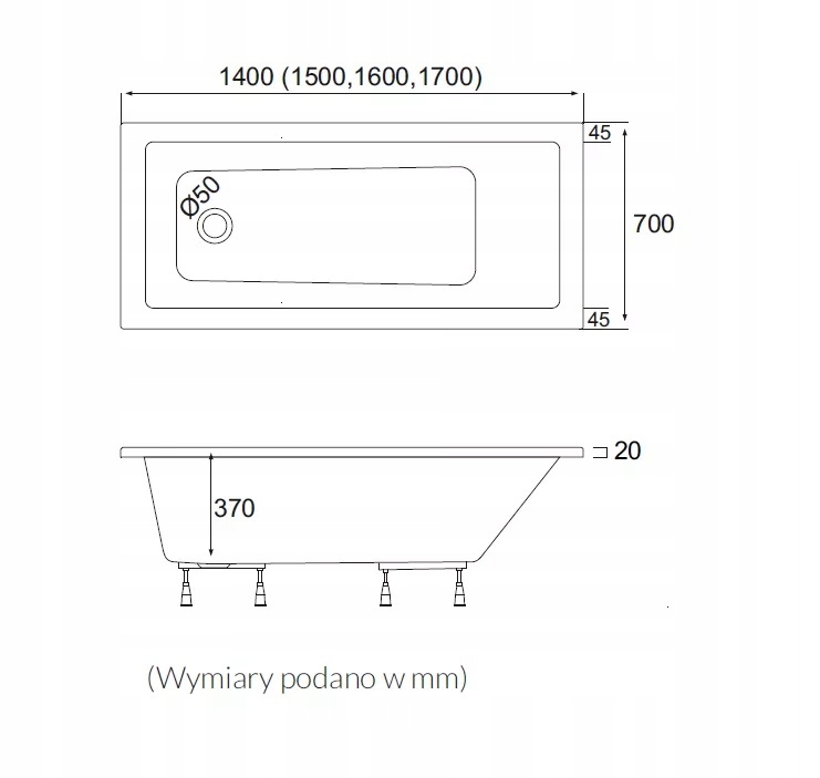 CALDO Акриловая ванна SLIM 160x70 SCHEDPOL