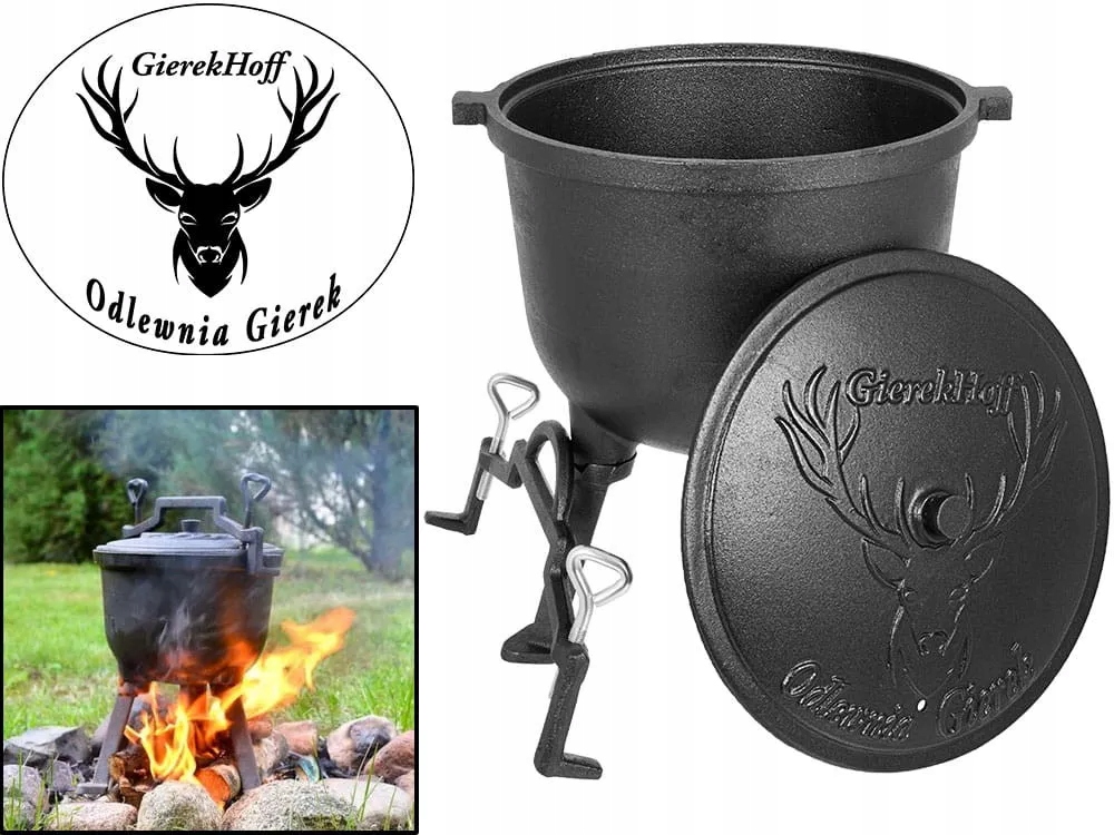 ✅kociołek żeliwny nad ognisko, Znany roównież Jako Bogracz, Został Wyprodukowany Przez odlewnię gierek. przewodzi ciepło i równomiernie je rozprowadza. p>