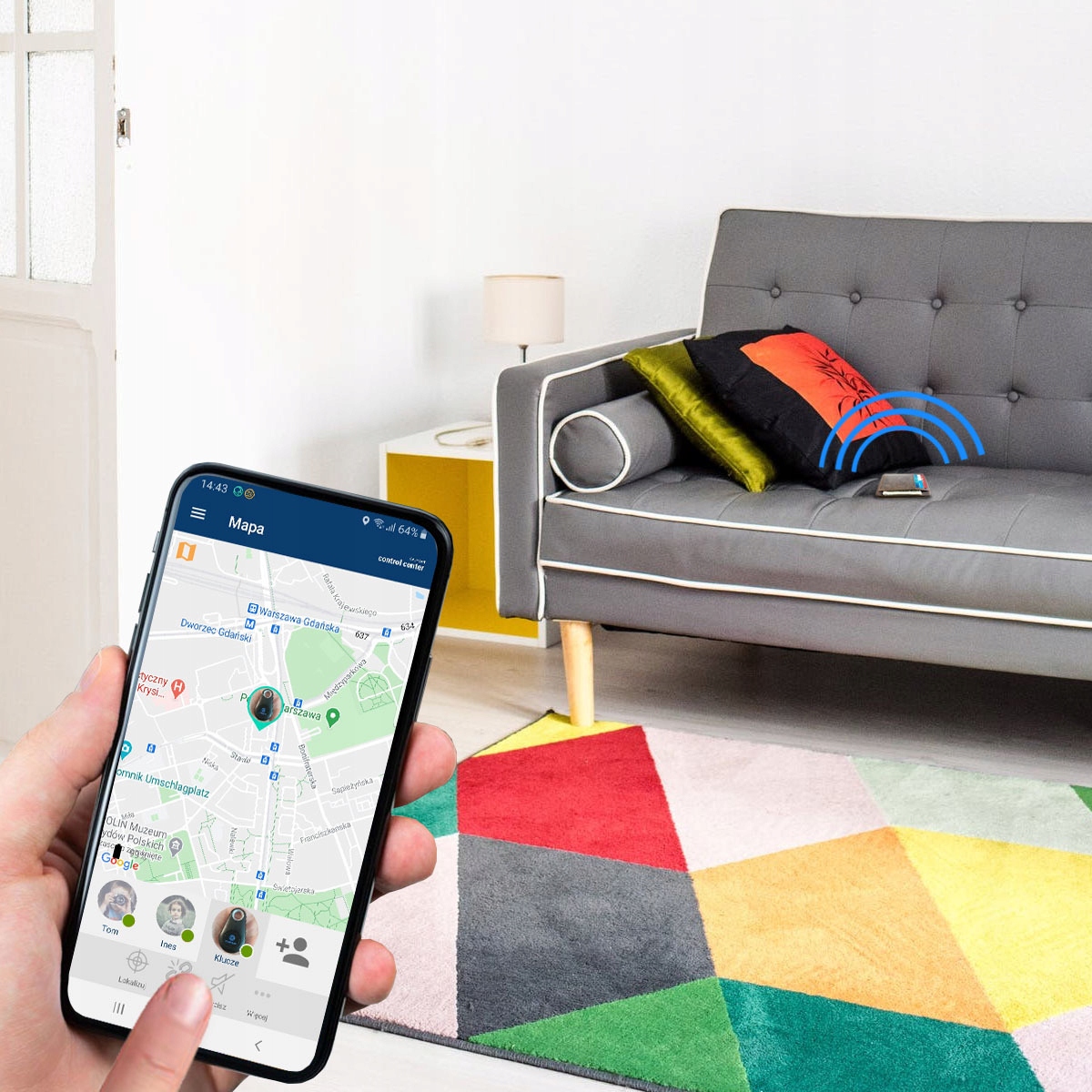 НАЙТИ РЯДОМ — используйте приложение CALMEAN Control Center, чтобы активировать звук на метке Bluetooth, когда она находится в пределах 20 метров.