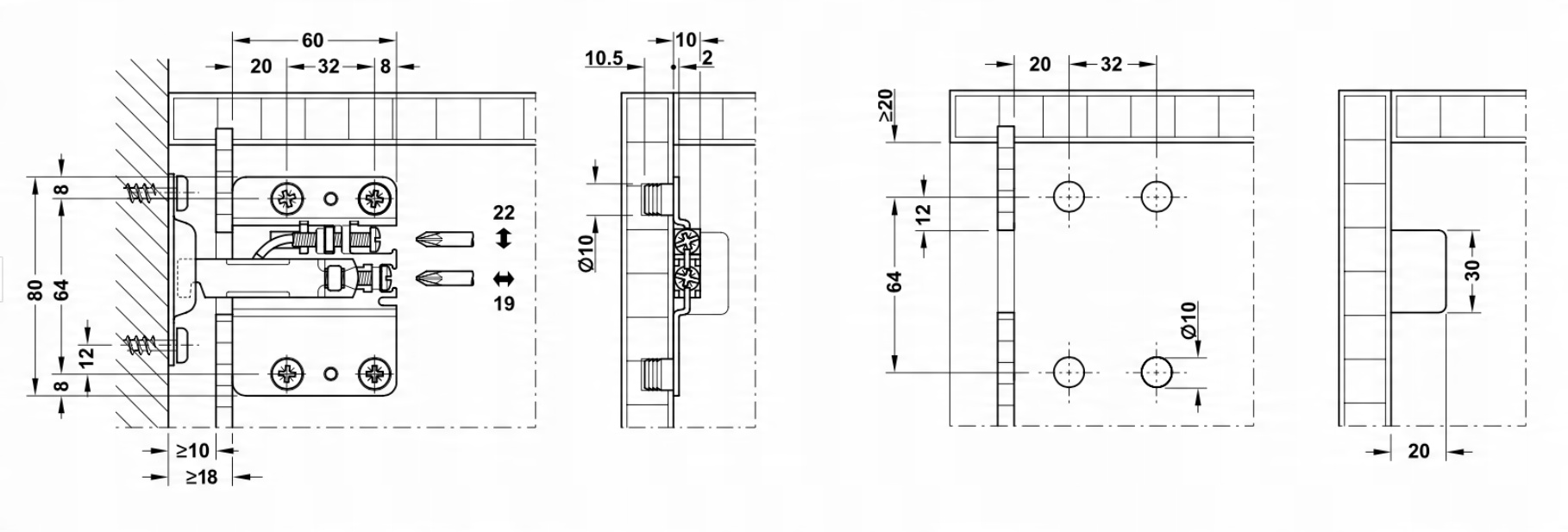 Подвеска предназначена для крепления НИЖНИХ шкафов на специальную монтажную пластину.
