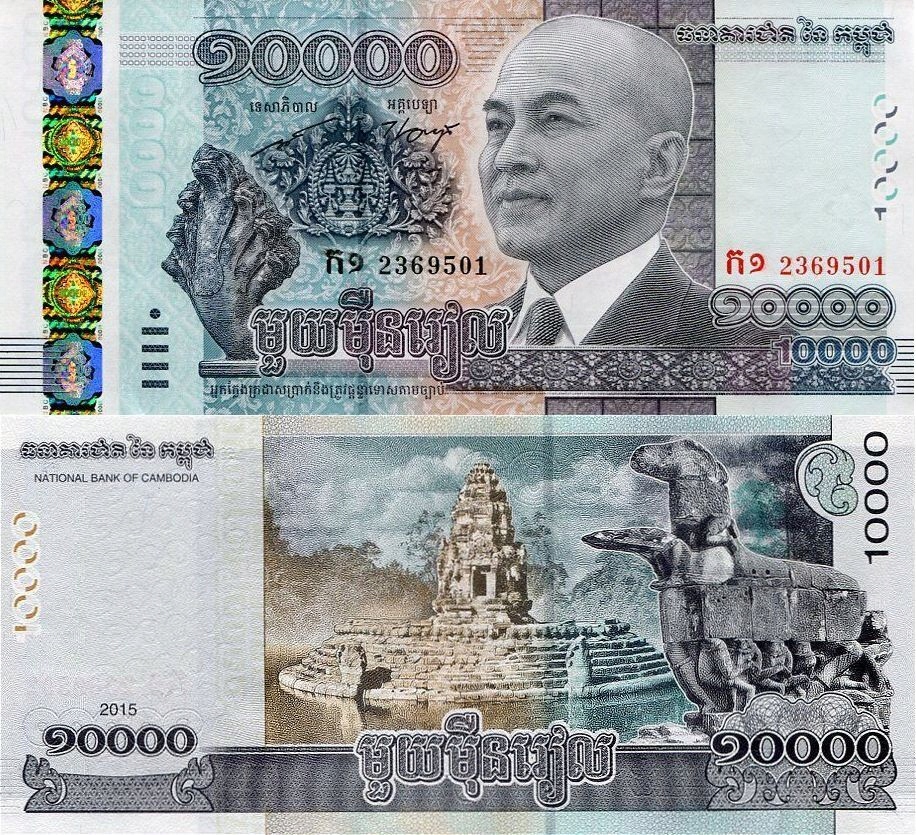 Довольно случайная банкнота 10 000 Riels из Камбоджи - 2015. (P -69) в абсолютно отличном банковском деле и (UNC).