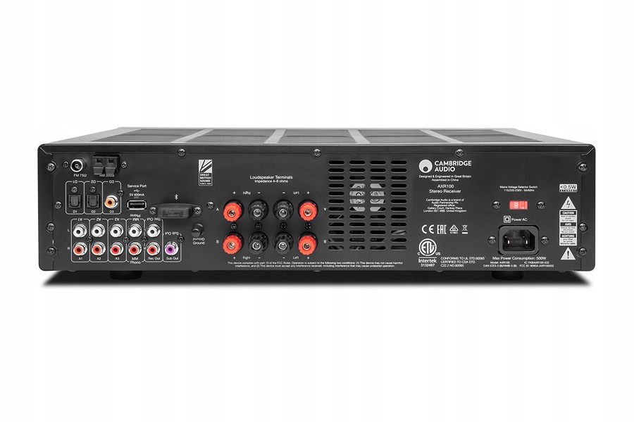 Самый мощный ресивер серии Cambridge Audio AX обеспечивает огромную мощность в 100 Вт. Вт на канал при нагрузке 8 Ом, имеет отдельный выход на сабвуфер для улучшения качества басов и два набора выходов на динамики. Кроме того, встроенный Bluetooth-приемник позволяет транслировать музыку со смартфона, планшета или ПК.