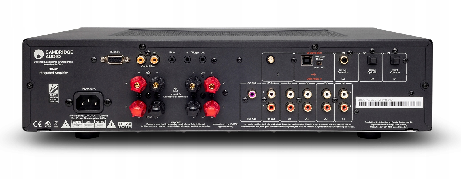 На плате установлен новый цифро-аналоговый преобразователь ESS Sabre SE9010K2M, питающий два оптических входа (24 бит/96 кГц) и коаксиальный вход (24 бит/192 кГц) – оба уже присутствуют в CXA60. . Однако на этот раз имеется также вход USB (32 бит/384 кГц PCM и DSD256), а также триггерные входы RS232 и 12 В.