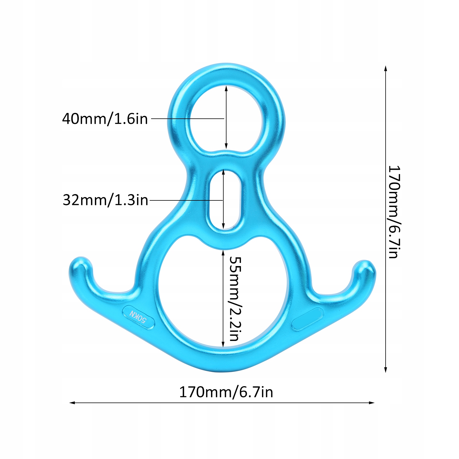 1. Изготовлен из магниевого сплава горячей ковки, который обладает такими преимуществами, как высокая прочность, легкий вес и удобство переноски. 2. Утолщенная конструкция средней части спускового устройства типа 8 больше, чем обоих концов, что позволяет повысить износостойкость и снизить вес. 3. Внутренняя стенка гладкая и не имеет заусенцев, что позволяет уменьшить износ веревок во время использования. 4. Максимальное напряжение подшипника составляет 50 кН, что является хорошим помощником для активного отдыха. 5. Может использоваться для скалолазания на открытом воздухе, авиационных работ, лазания по деревьям и других видов активного отдыха.
