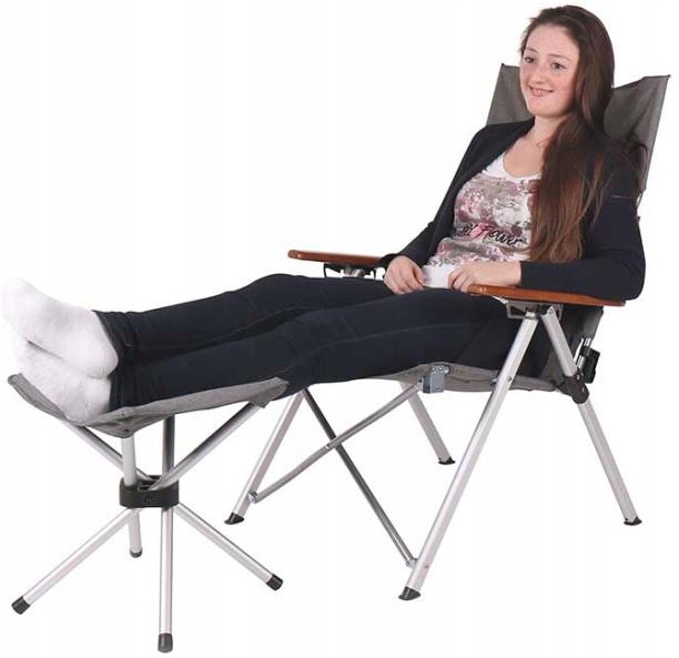 Благодаря очень небольшому размеру упаковки это идеальное походное кресло для отдыхающих. . Серая крапчатая ткань с кожаной этикеткой и коричневые деревянные подлокотники придают креслу эксклюзивный дизайн. 4-ступенчатая регулировка спинки обеспечивает комфортное сидение.