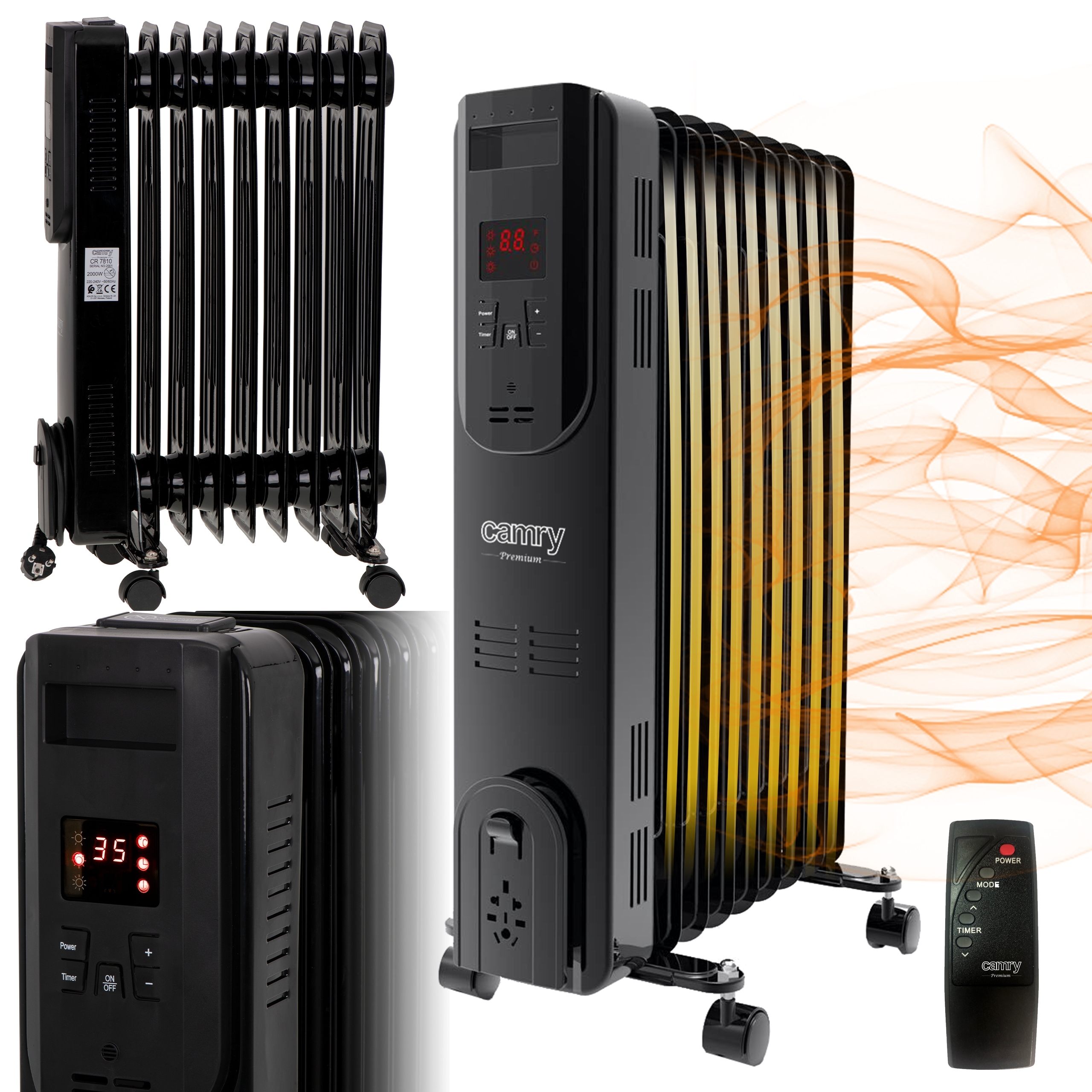 Масляный радиатор CAMRY с дистанционным управлением CR7810 2000 Вт черный