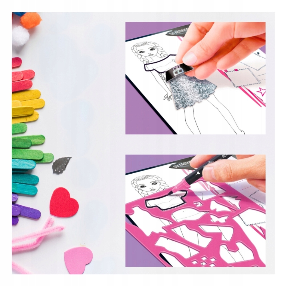 С каждым новым рисунком молодой дизайнер повышает уверенность в себе, лучше осознавая свои художественные способности. Кроме того, набор развивает воображение, помогает развивать пространственное мышление и формировать представления о последних модных тенденциях. Идеальный способ обучения через игру, который не только развлекает, но и обучает.
