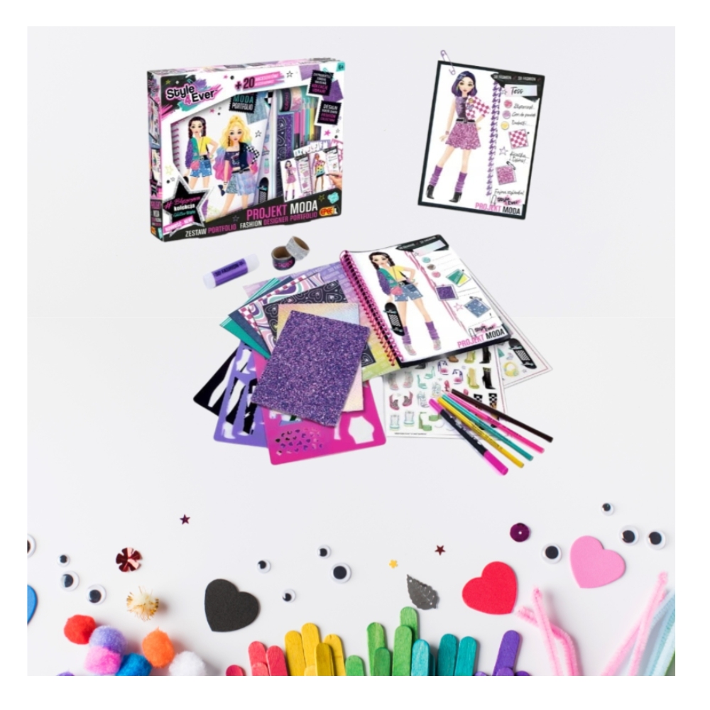 Модное портфолио — идеальный способ развить воображение и навыки рисования. Этот набор открывает огромные творческие возможности, позволяя вам создавать одежду, отражающую ваши уникальные идеи и личный стиль. Используя шаблоны и различные материалы, дети могут исследовать широкий спектр узоров и цветов, что развивает их ручные и художественные навыки. Помимо творческого развлечения, набор способствует развитию дизайнерских навыков, позволяя реализовать свои мечты о карьере в моде.