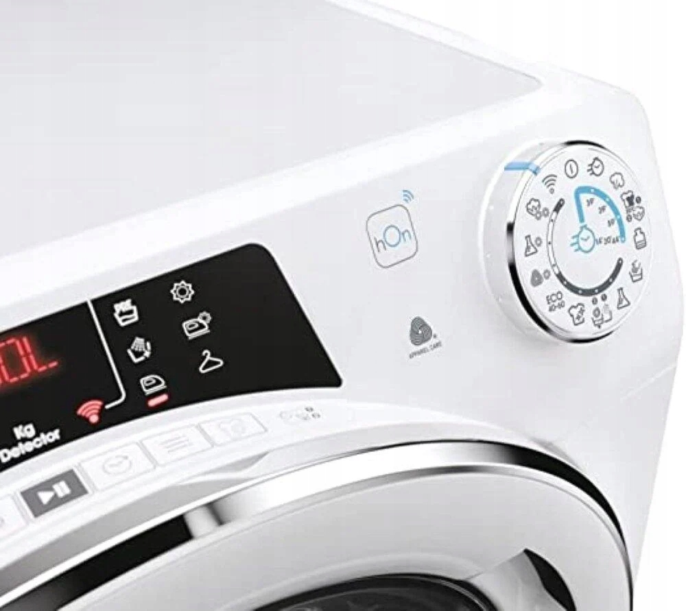 Стирально-сушильная машина с загрузкой для стирки 9 кг, загрузкой для сушки 6 кг, детектор кг взвешивает белье и автоматически регулирует количество потребляемой воды и электроэнергии, опция пара может облегчить глажение, подключение через Google Home и Alexa или напрямую через смартфон и применение hOn, отсрочка запуска до 24 часов, максимальная эффективность в борьбе с пятнами благодаря технологии Active Motion, которая увеличивает скорость вращения на нескольких уровнях.