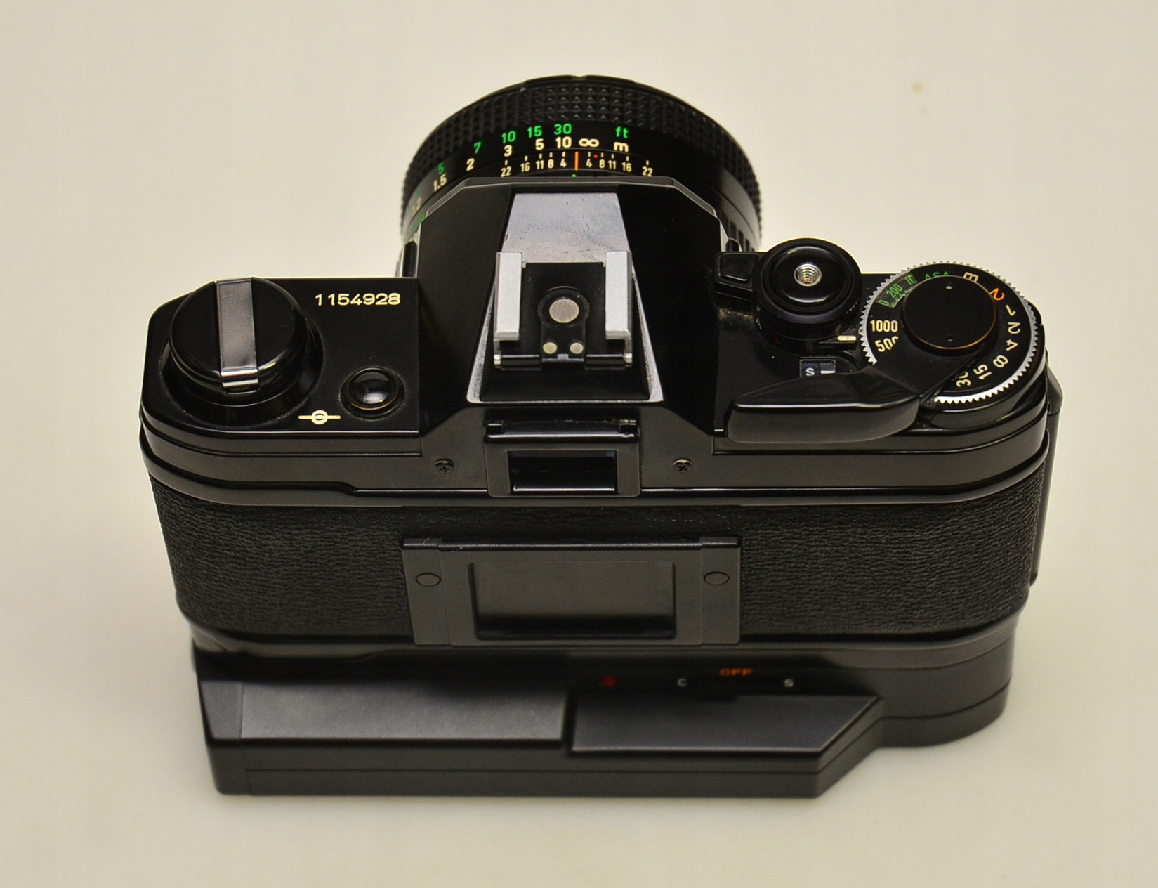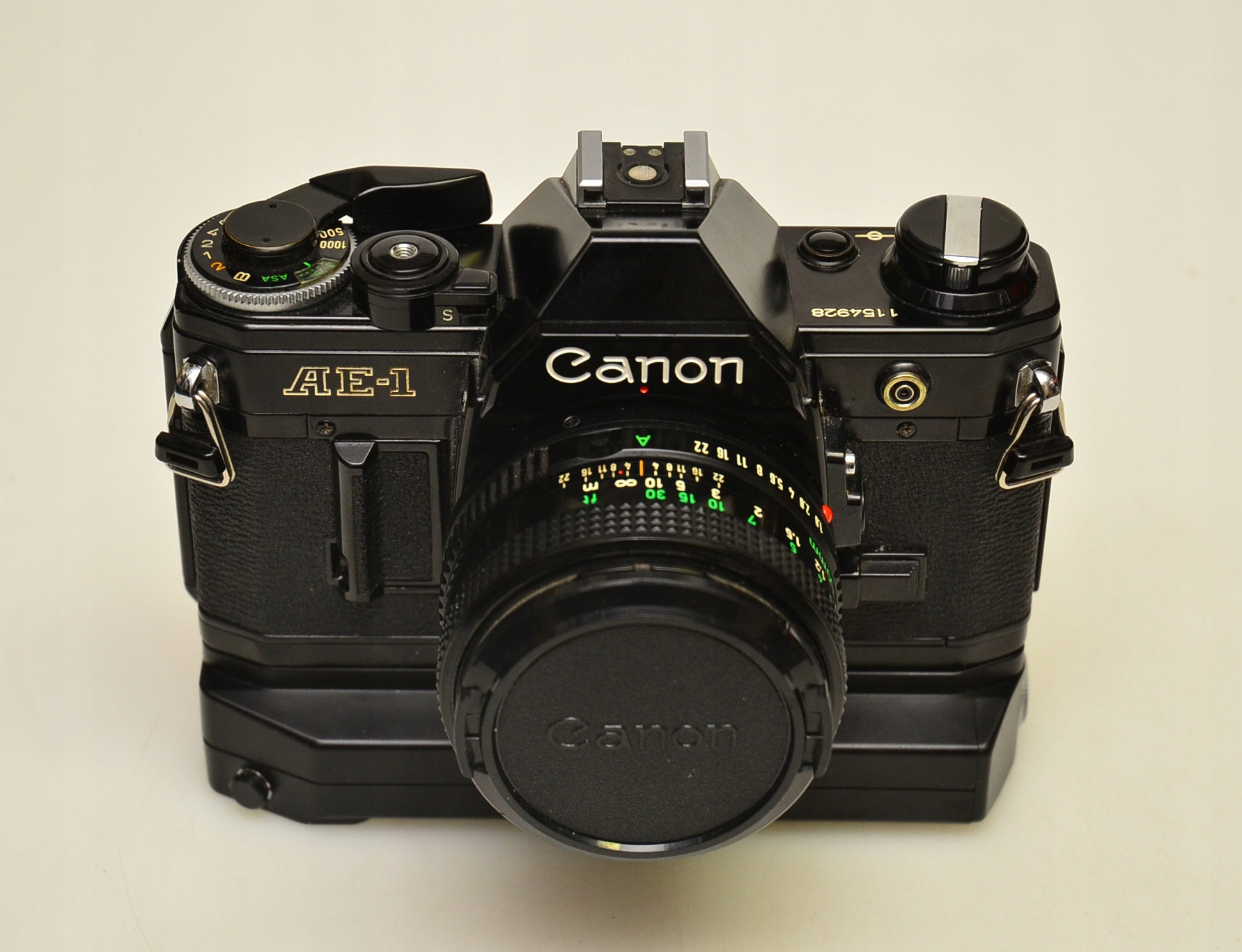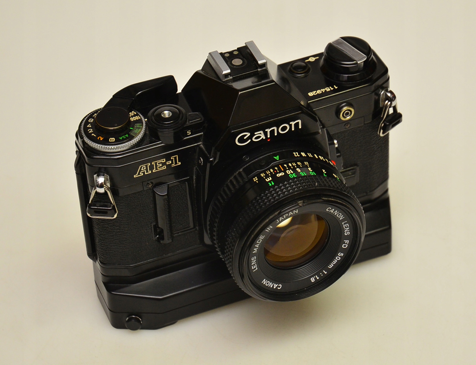 Аналоговая зеркальная камера Canon AE-1 с объективом Canon FD 50mm 1:1.8 и мотором Power Winder A2