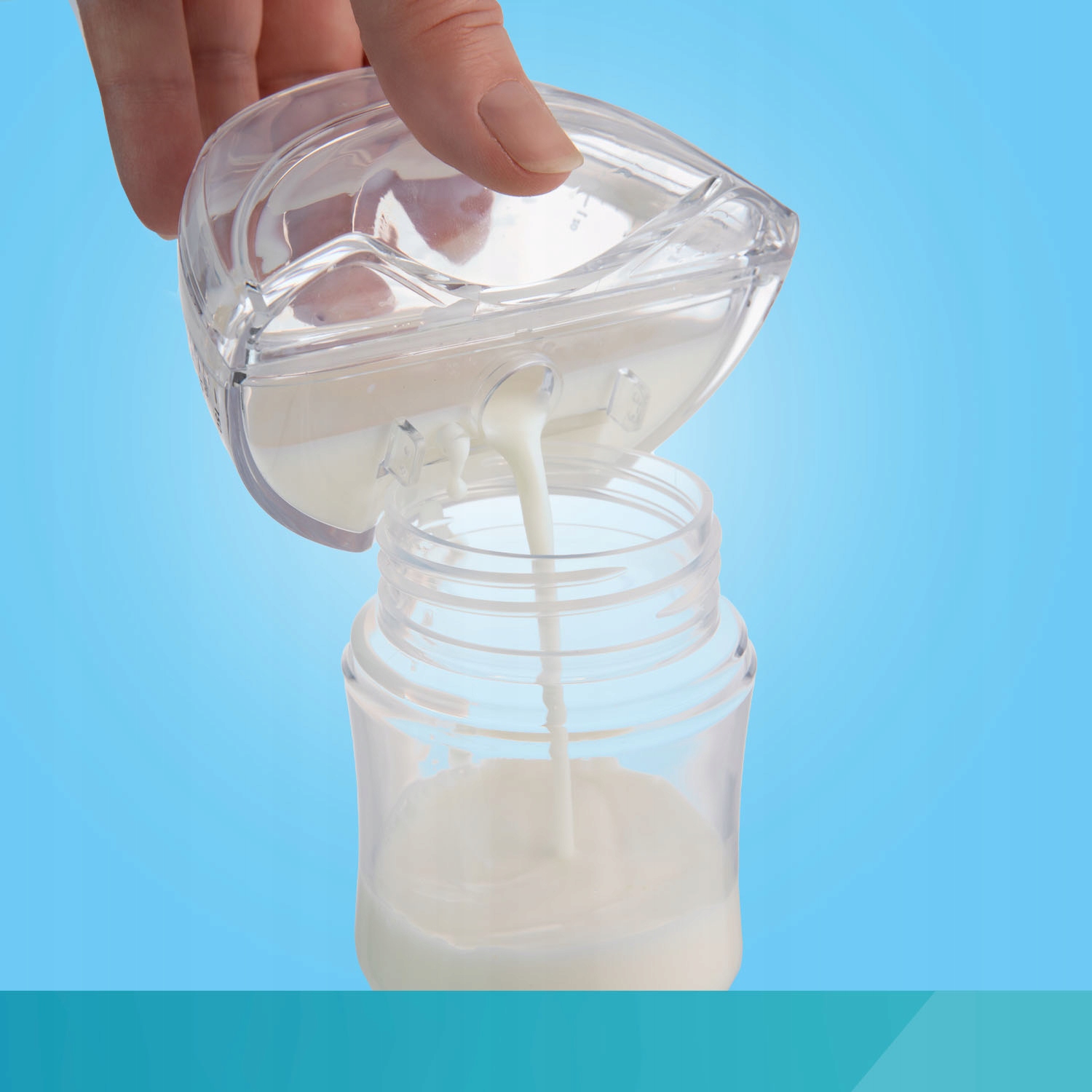 Съемный контейнер для молока имеет специальное отверстие, которое облегчает наливание сцеженного молока в бутылочку. .Кроме того, контейнер открывается, что позволяет провести тщательную мойку, дезинфекцию и просушку внутри, а специальный уплотнитель предотвращает протечку при закрытии.