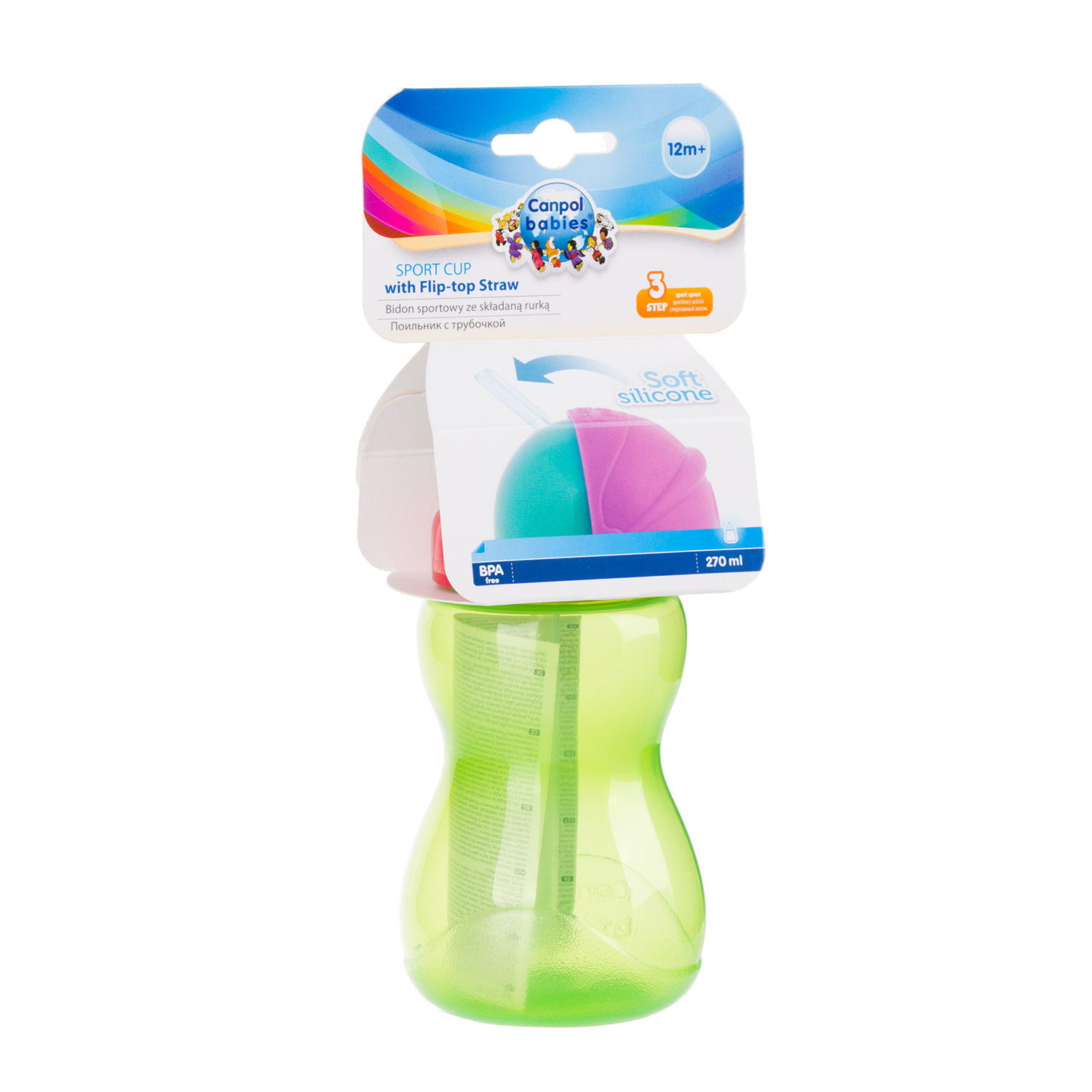 Детская бутылочка для воды Canpol со складной силиконовой трубкой, 270 мл, зеленая