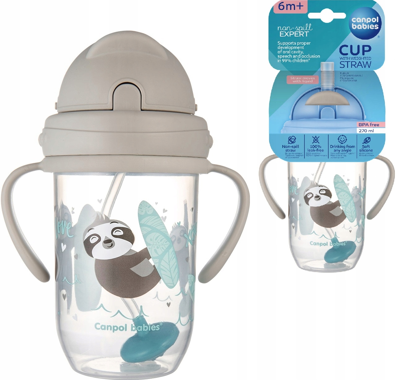 Новая чашка с силиконовым противокапельным покрытием трубка и грузик Canpol baby поддерживают правильное развитие полости рта, речи и прикуса у 99% детей*. Это отличный выбор для детей, которые только начинают свой путь обучения пить самостоятельно. Подходит для детей от 6 месяцев! Уникальная силиконовая трубка с грузом следует за жидкостью, благодаря чему ваш малыш выпьет любимый напиток до последней капли, независимо от того, под каким углом он наклоняет чашку. Специальная мембрана, размещенная в трубке чашки, обеспечивает попадание жидкости в трубку только при питье, предотвращая проливание, а современная крышка позволяет легко и удобно спрятать трубку и гарантирует 100% герметичность, без протекания!