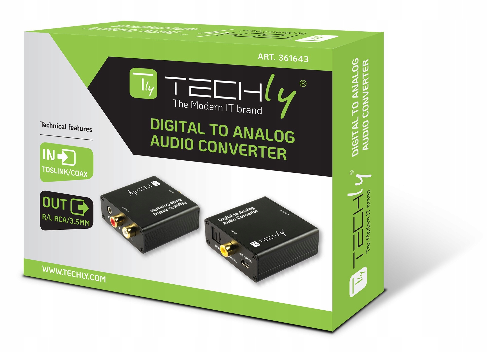 ЦАП-конвертер Techly IDATA SPDIF-9, номер по каталогу: 361643 — ЦАП-преобразователь цифрового Toslink (S/PDIF) или коаксиального в аналоговый RCA L/R и стерео 3,5 мм
