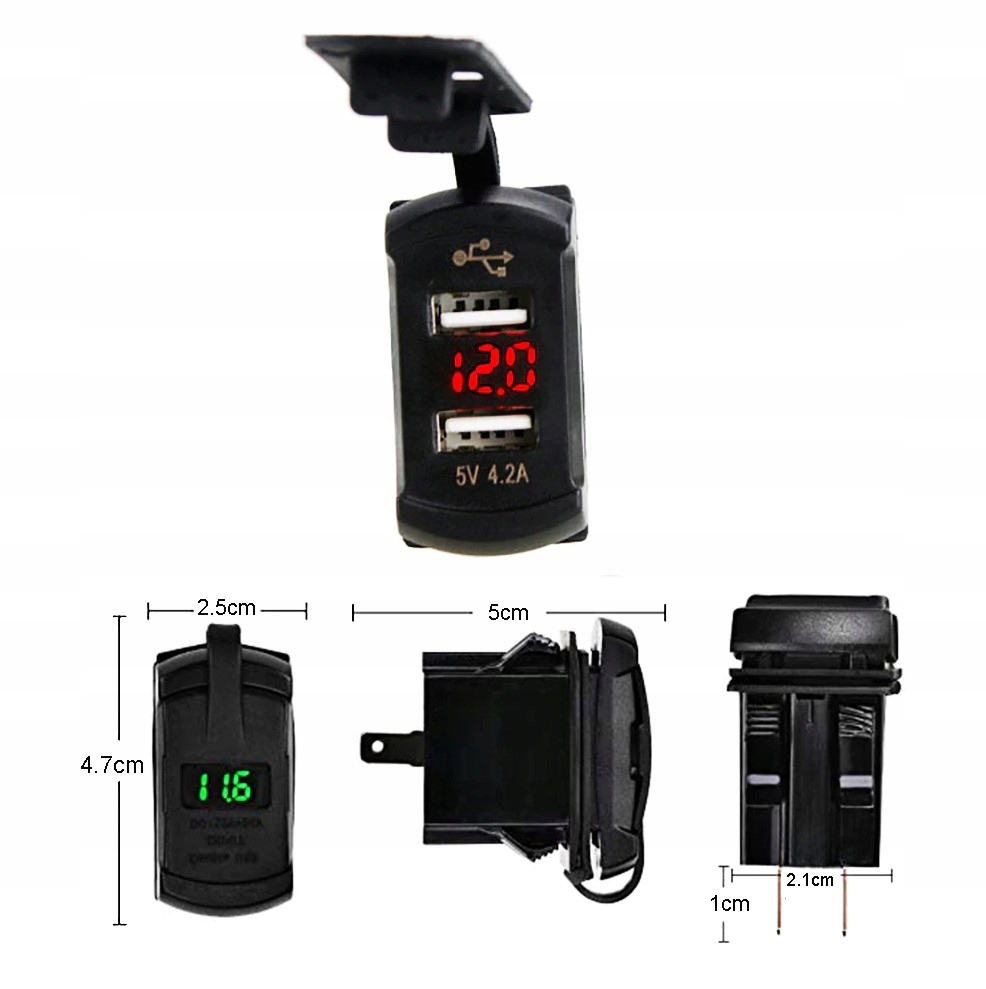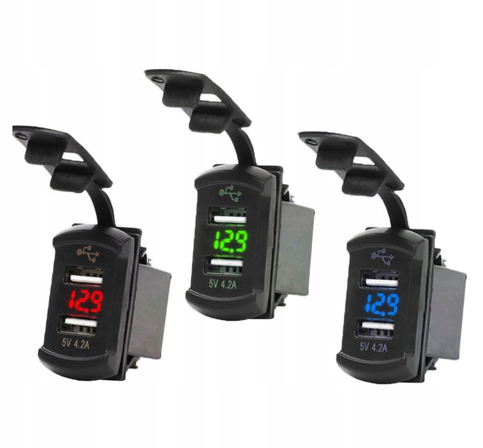 ВОДОНЕПРОНИЦАЕМОЕ ЗАРЯДНОЕ УСТРОЙСТВО USB PR 5В 4.2А С ЗЕЛЕНЫМ ВОЛЬТМЕТРОМ