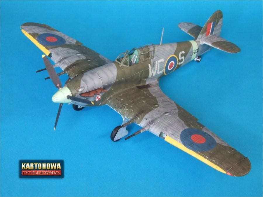 Журнал «Картонова коллекция» с картонной моделью английского истребителя Hawker Hurricane Mk IIC. На модели машина изображена в опознавательных знаках польской 309-й истребительно-разведывательной эскадрильи «Земия Червенска». Самолеты этого типа находились на вооружении этого подразделения с апреля по август 1944 года. Модель средней сложности в сборке, графически улучшенная. Имеет обширное оборудование кабины пилота и отсека шасси, а также возможность изготовления разделенных рулей (элероны, рули направления).