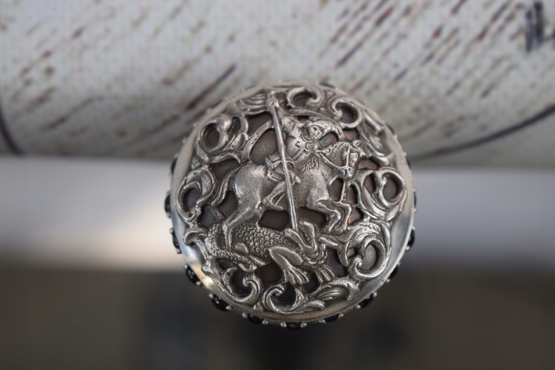 Царистская серебряная ласка - Рубини - Серебряная Россия 84 Украшение святого Иержи на лошади