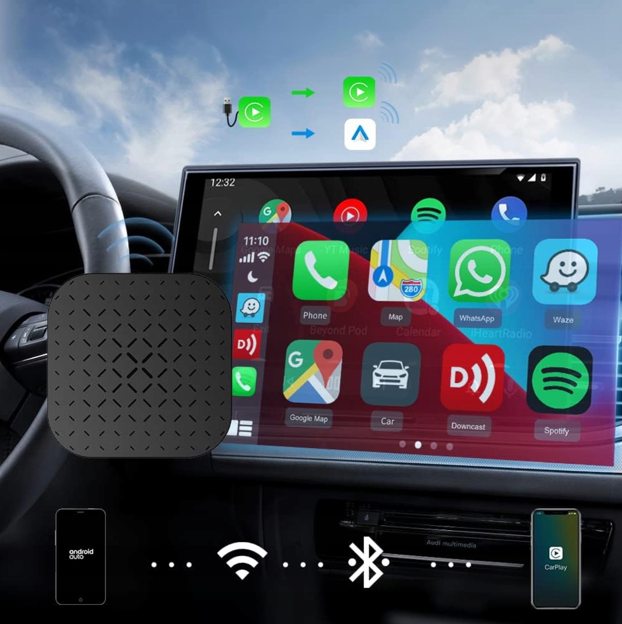 - ✅ Позволяет подключить телефон по беспроводной сети к Android Auto или Apple CarPlay в автомобиле. автомобиль
