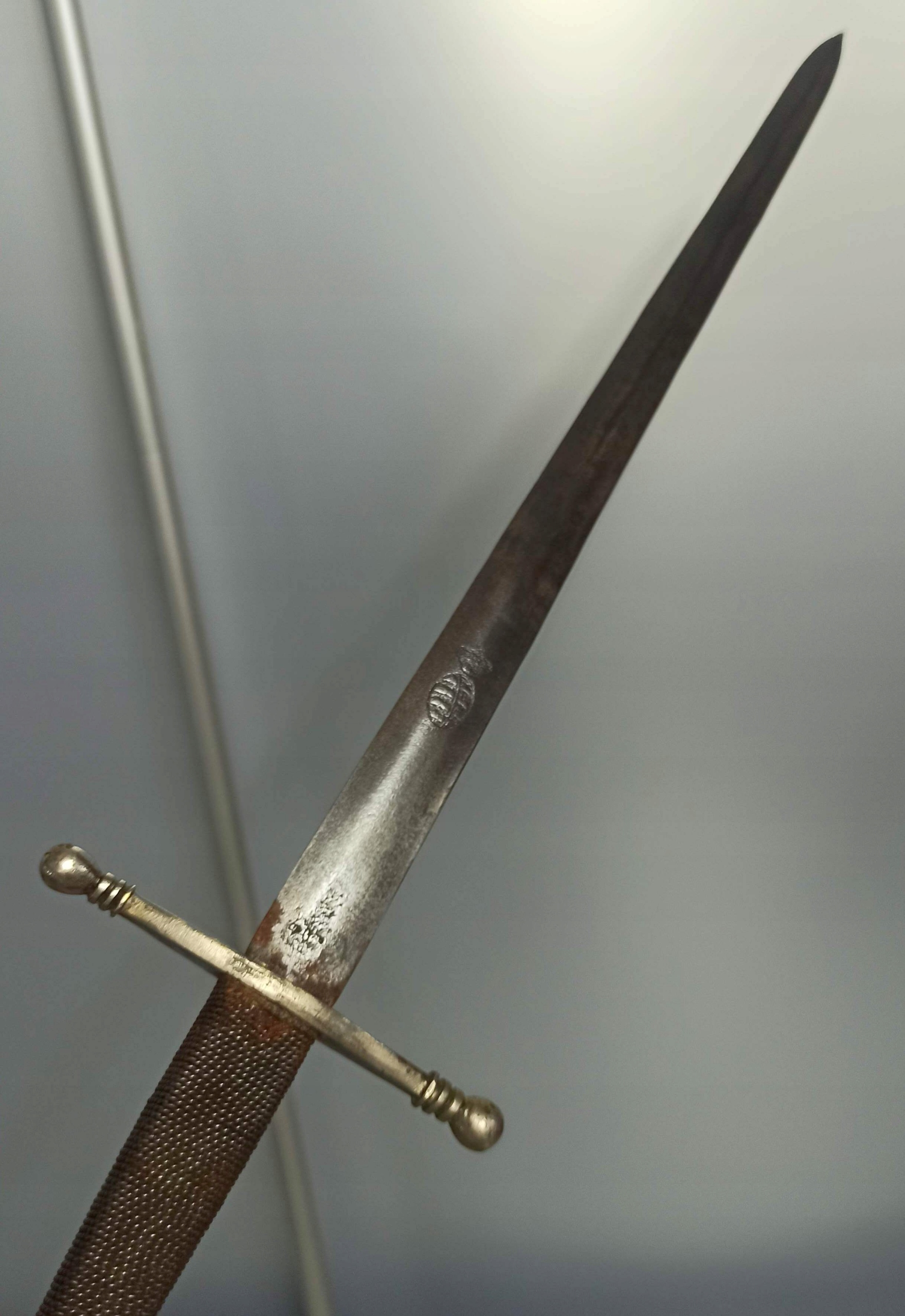 Кинжал CarLOS V. Копия меча Карла V (24.02.1500 - 21.09.1558), короля Испании в 1516–1556 гг. под именем Карла I и избранного римским императором в 1516–1556 гг. 1519–1556 гг. Из династии Габсбургов. Следы времени в виде ржавчины и потертостей.