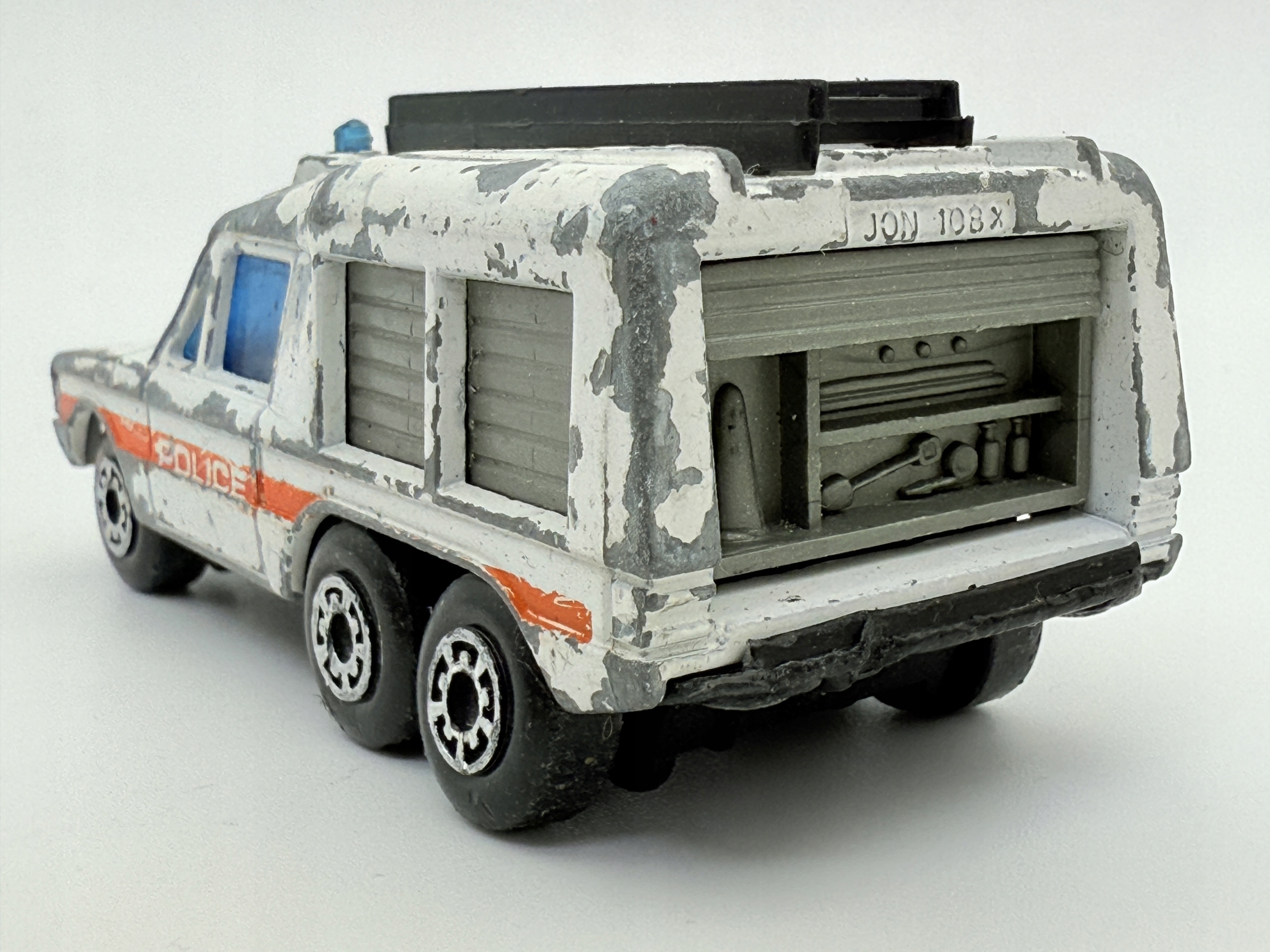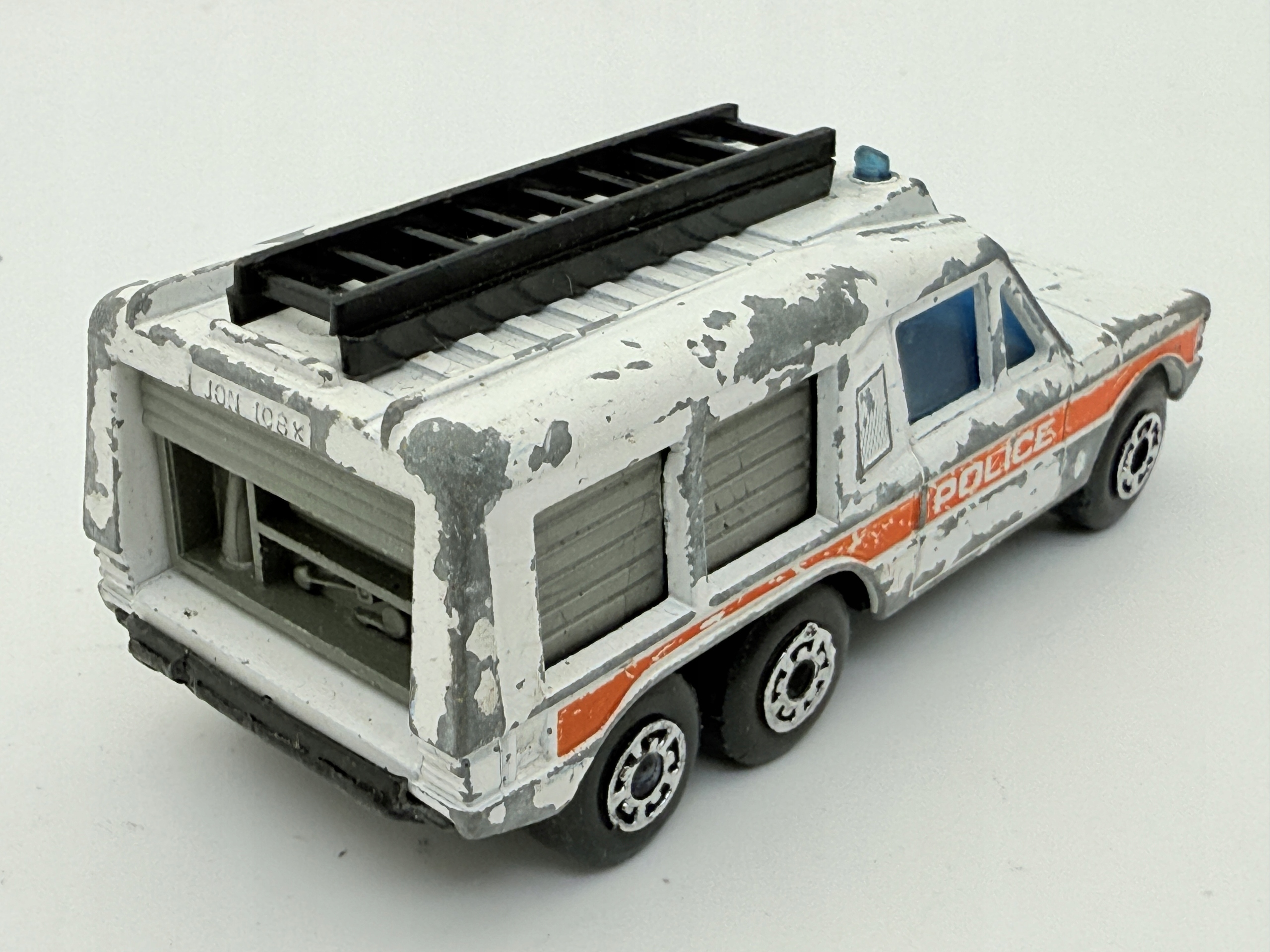 Эта весна — настоящий праздник для коллекционеров моделей спасательных машин. Кармайкл Коммандос, сделанный из металла, выглядит белым, с оранжевой надписью «ПОЛИЦИЯ» и черной лестницей на крыше. Дополнительно модель оснащена синими световыми сигналами, что добавляет ей реалистичности. Шестиколесная конструкция наводит на мысль, что мы имеем дело со спасательным грузовиком, а прозрачные синие окна придают ему характер.
