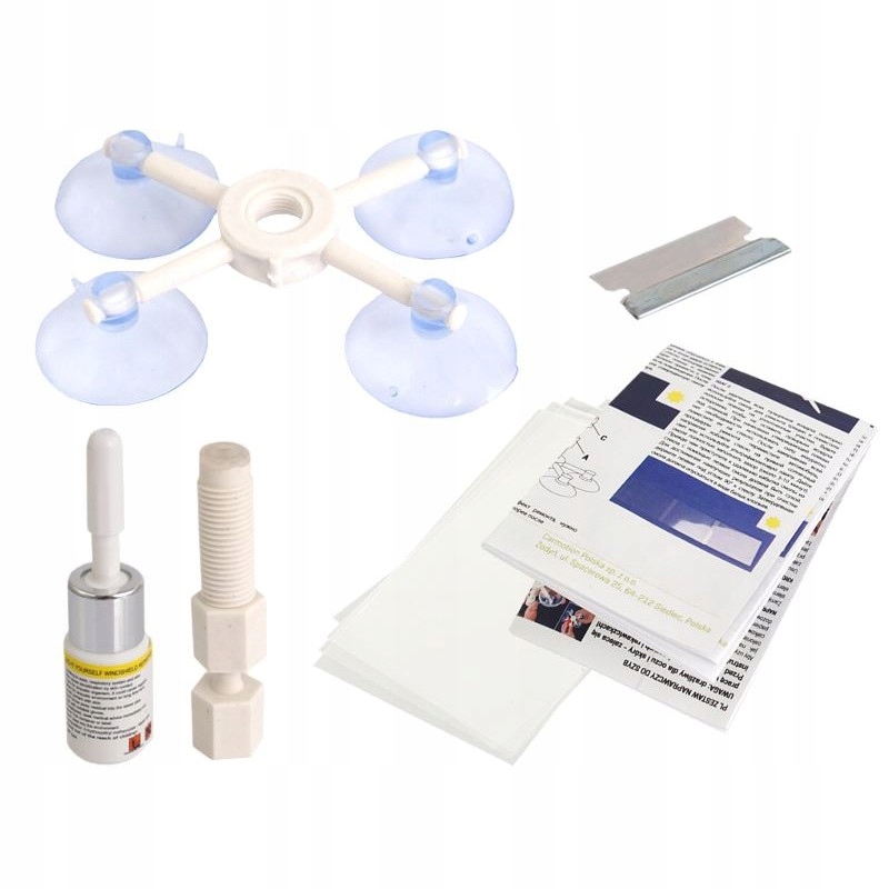 Набор подходит для ремонта повреждения стекла в форме небольших стежков и продольных трещин не дольше 15 см.