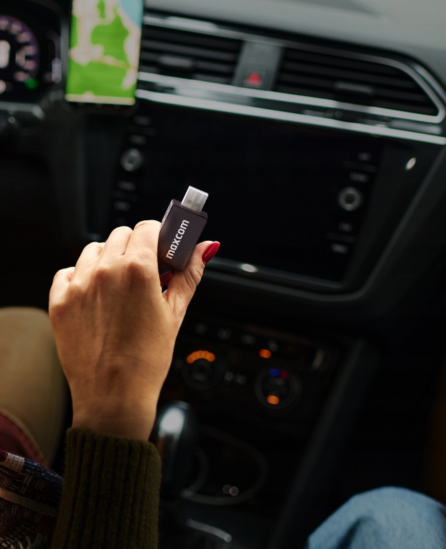Maxcom Wave MC02 работает небольшим USB-адаптером, который соединяется с мультимедийной системой автомобиля с использованием Bluetooth и Wi-Fi. Просто подключите его к USB -порту в машине, а затем сочетайтесь с телефоном. С тех пор Apple CarPlay® или Android Auto® работает полностью беспроводной, устраняя необходимость использования кабелей.