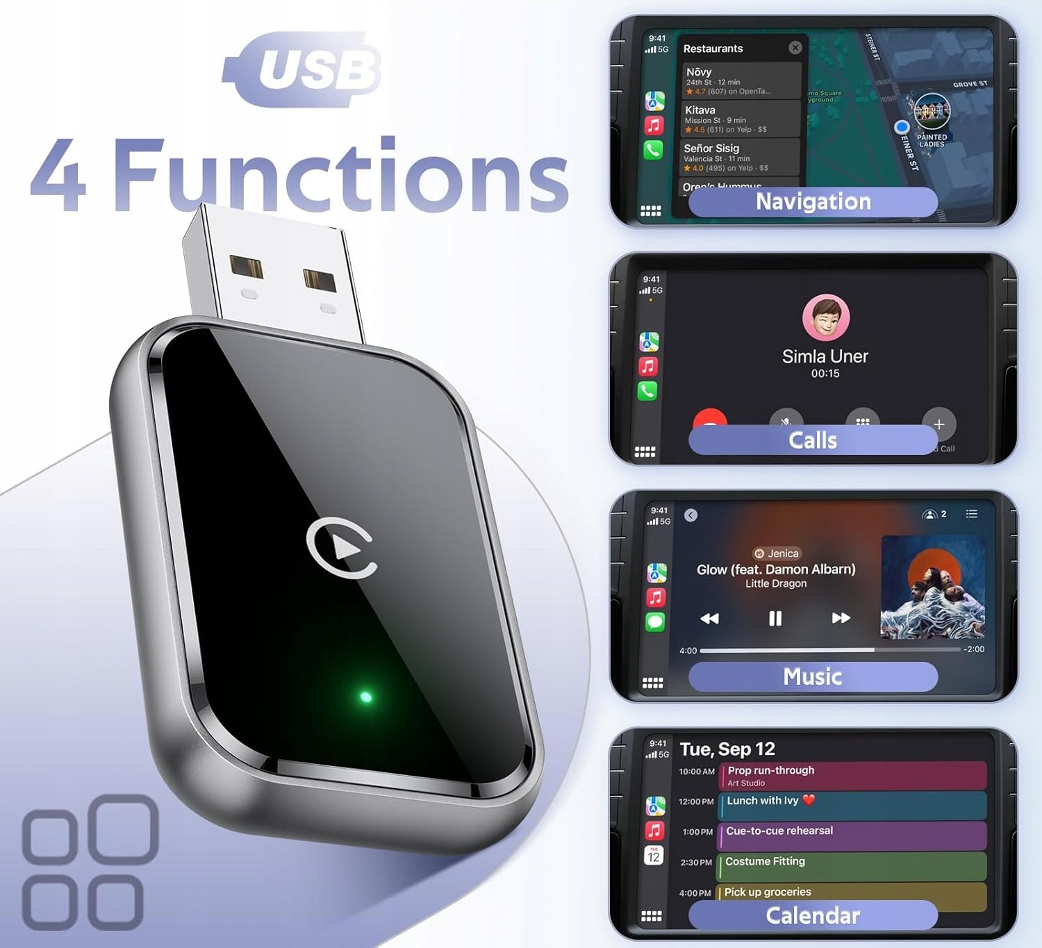 Во многих автомобилях CarPlay работает только после подключения USB -кабеля. Это неудобно, особенно на коротких маршрутах. aizeo syy03 позволяет использовать навигацию, музыку, сообщения и голосовые соединения , не постоянно вытаскивая телефон из кармана.