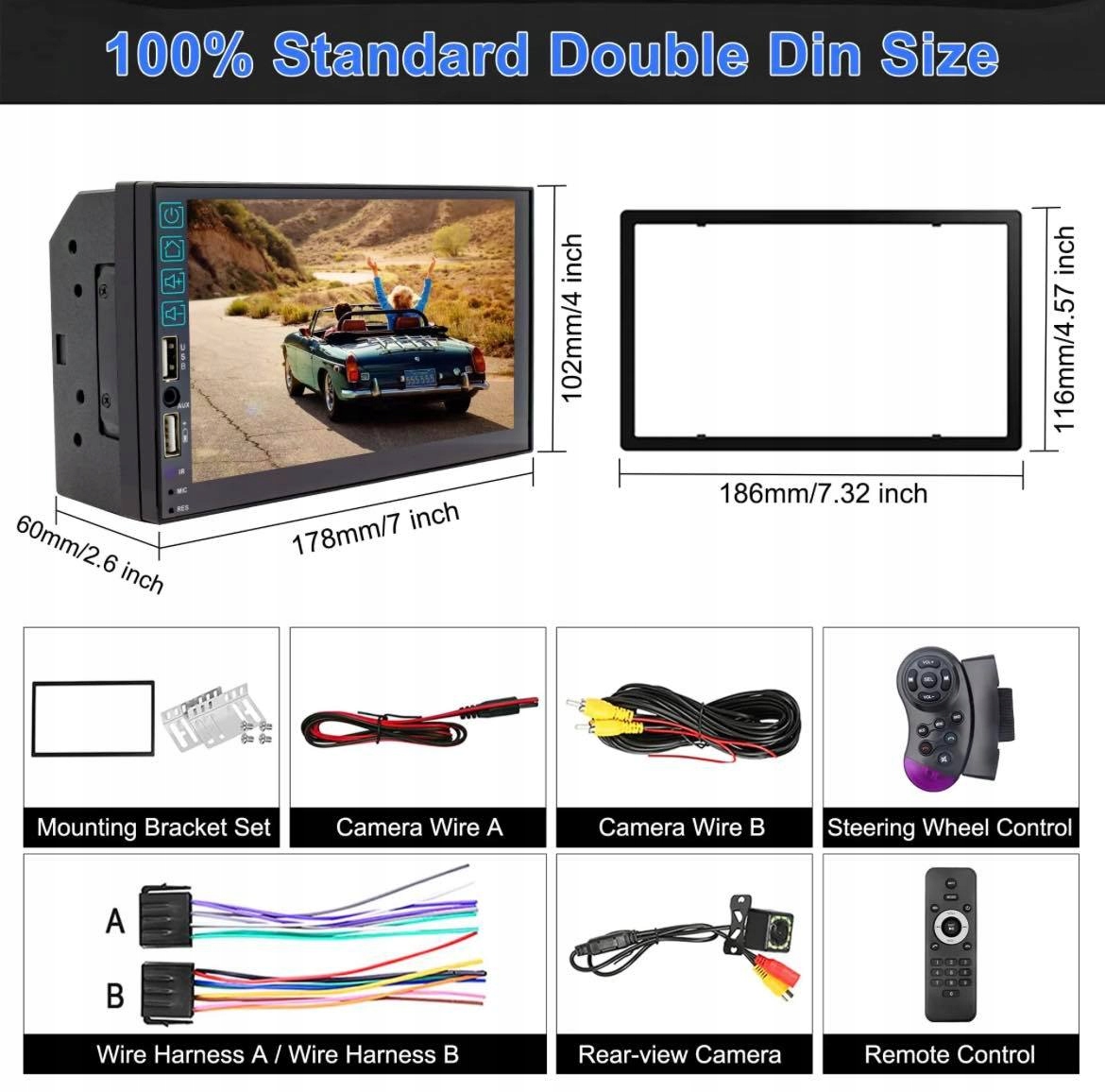 ✔Наша автомобильная магнитола имеет стандарт двойной DIN. размер, Длина: 7,01 дюйма/178 мм, Высота: 3,94 дюйма/100 мм. Перед покупкой проверьте, соответствует ли размер вашей автомобильной стереосистемы контуру центральной консоли вашего автомобиля.