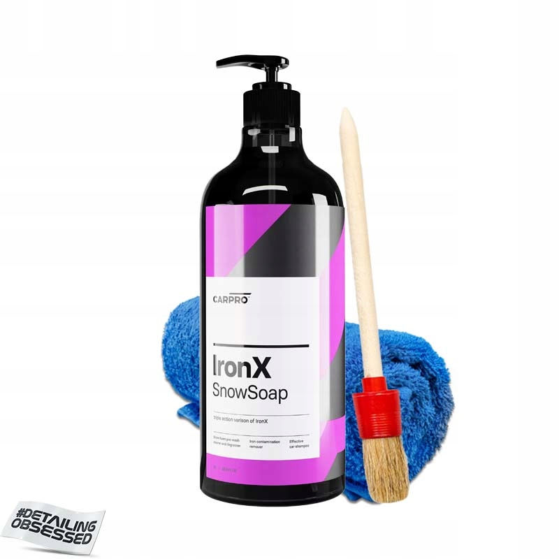CarPro IronX Snow Soap — высококонцентрированное чистящее средство, эффективно очищающее все загрязненные поверхности. Его можно использовать на окрашенных, металлических, стеклянных, пластиковых и резиновых поверхностях. IronX Snow Soap обладает сильными обезжиривающими свойствами и удаляет металлические отложения с поверхности краски.