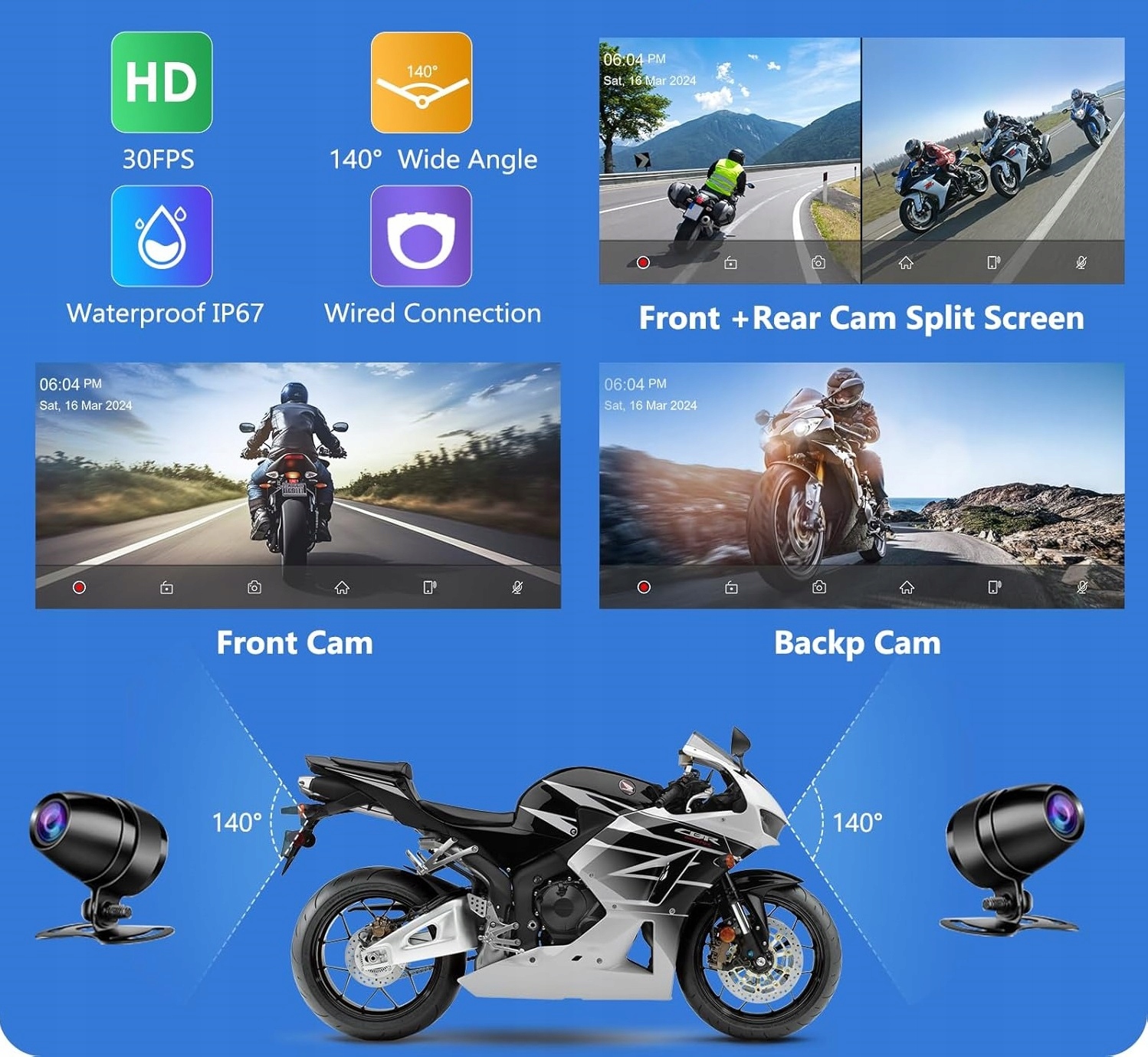 - Все 6,3-дюймовые карпуридные и задние камеры экрана мотоцикла оснащены определенной степенью защиты от IP67 от воды и пыли, что означает, что они обеспечивают лучшую долговечность во время проливного дождя и сложных условий.