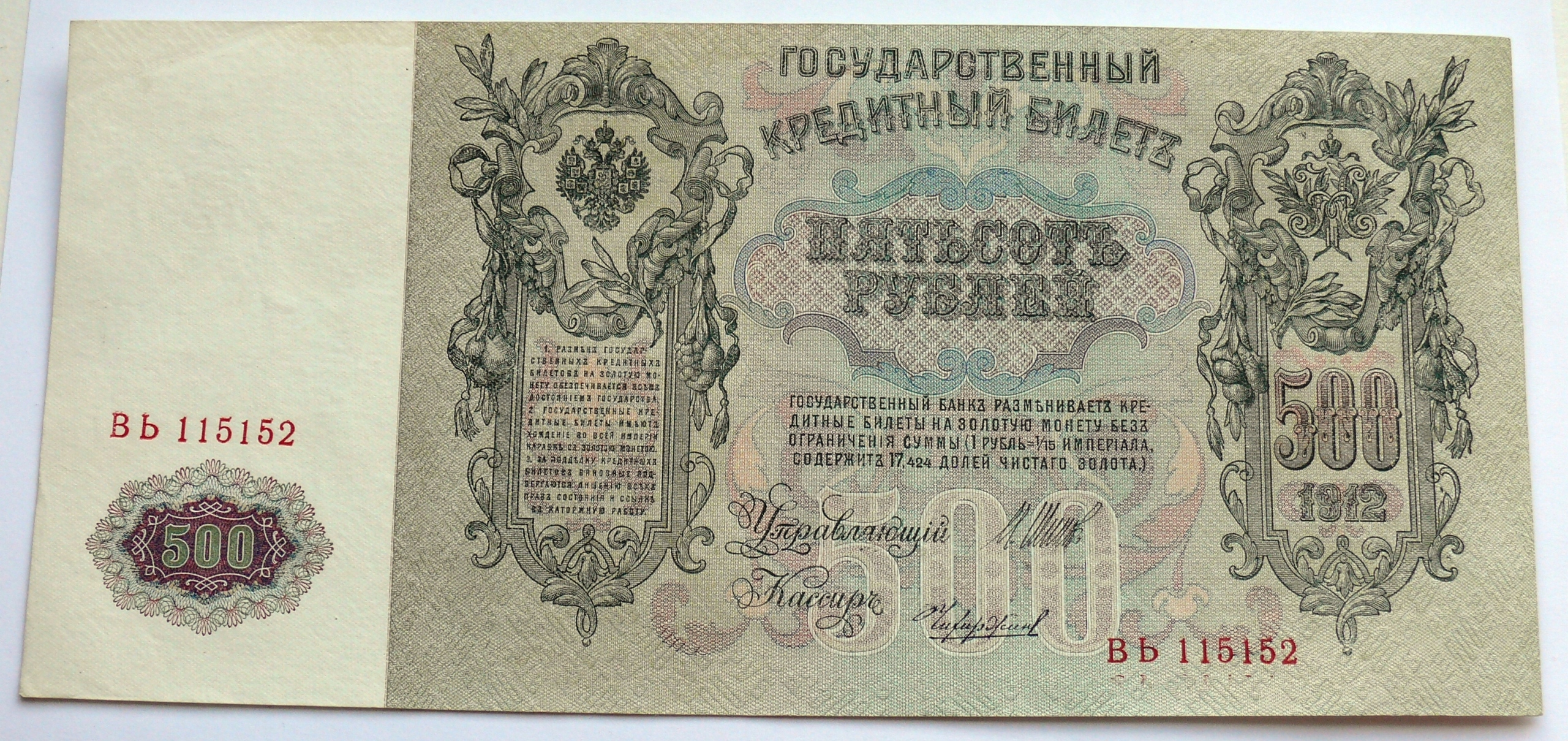 ЦАРСЬКА РОСІЯ - 500 рублів 1912 р. Бб - ШИПОВ - гарний стан