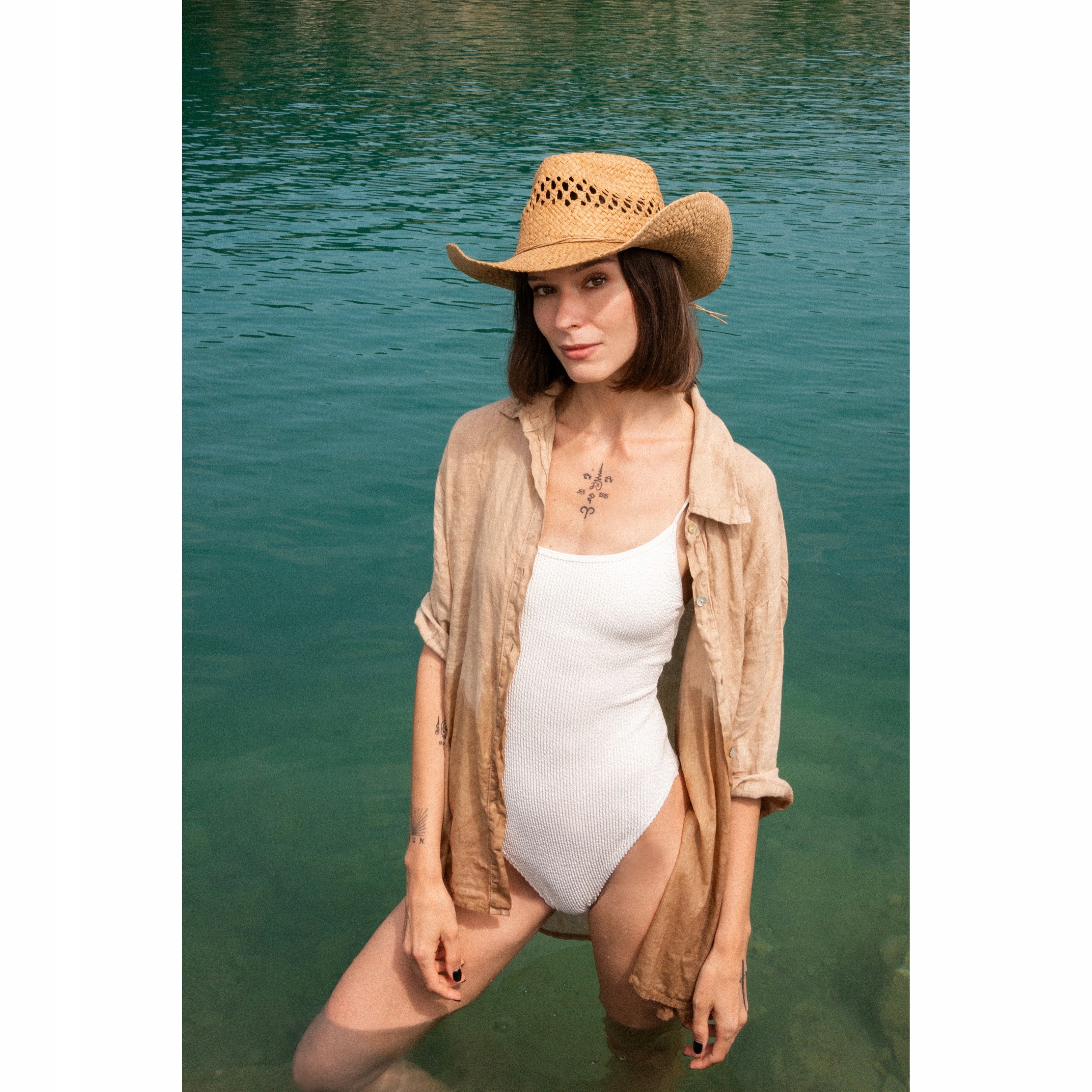 Женская и мужская ковбойская шляпа отлично смотрится на всех, у кого есть дух приключений и дикого запада. Он имеет характерно изогнутую кольцевую развязку. Защита от солнца.