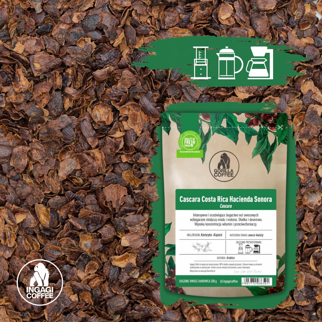 Cascara Costa Rica Hacienda — это богатство интенсивных и освежающих фруктовых нот, обогащенных сладостью меда и дыни.